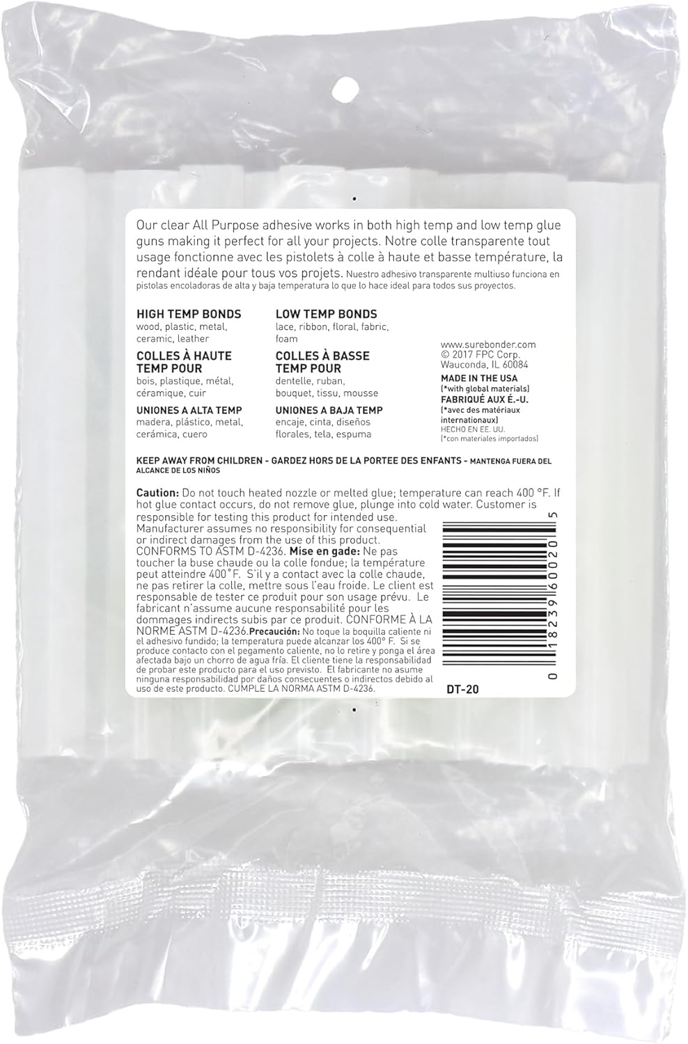 Surebonder Full-Size Hot Glue Sticks for Craft, DIY, and Repairs, All Purpose, All Temperature - 4-Inch Length - 20 Pack, Clear