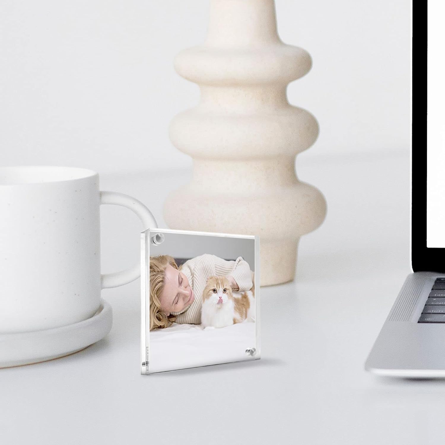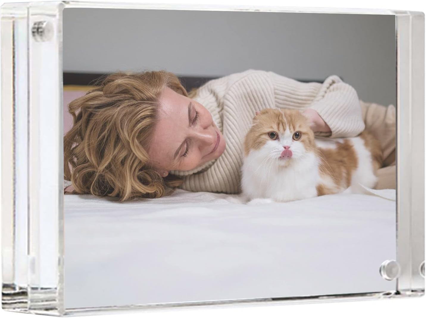 - Acrylic frame showcases two pictures or documents.