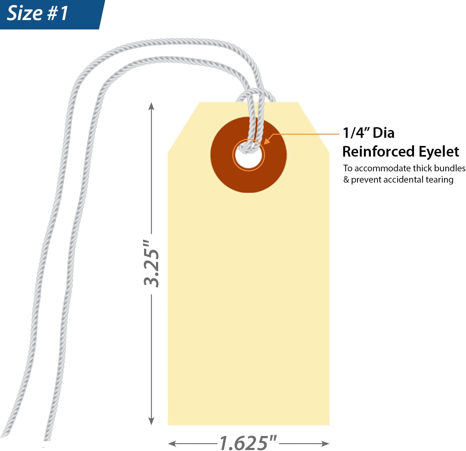 - TEAR RESISTANT: Tags include a reinforcing fiber patch for durability and stiffness. Eyelet diameter is 1/4 inch.