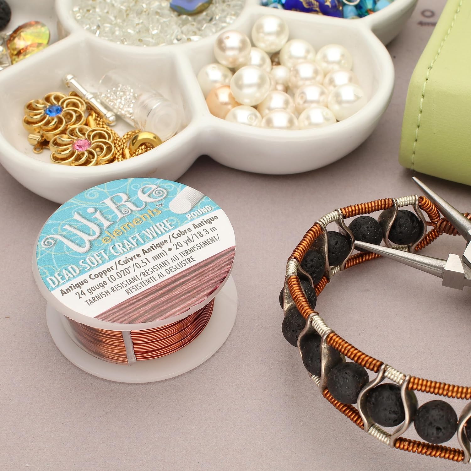 The Beadsmith Wire Elements Craft Wire – Tarnish Resistant, Soft Temper, Round, Antique Copper Color – 0.51mm, 24 Gauge, 20 Yard Spool – Jewelry Making, Wire Wrapping, Floral, & Other DIY Crafts