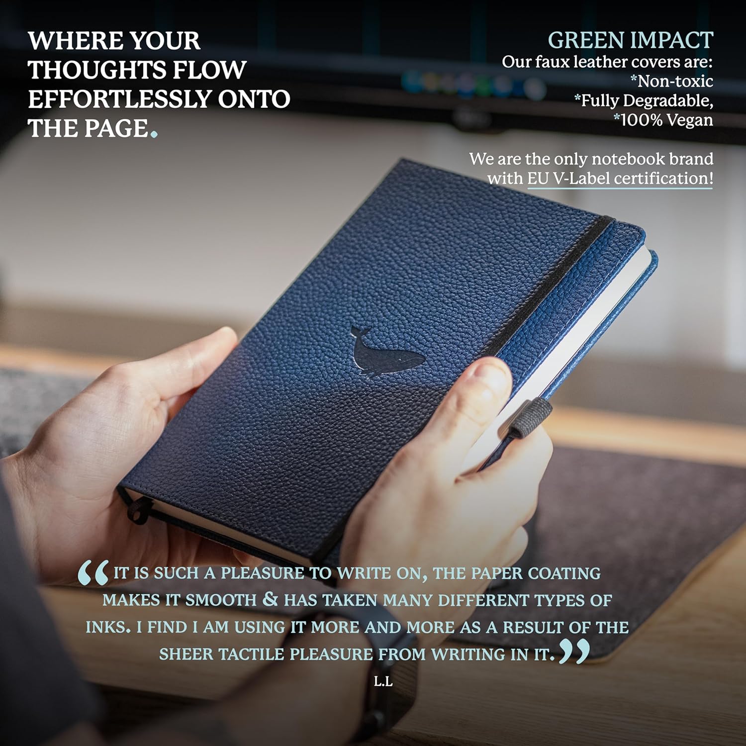 - HIGHEST-QUALITY WRITING PAPER: Dingbats Blue Whale Medium A5 Notebook Journal has 192 pages-96 sheets of no bleed, smooth writing, Cream 100gsm, acid-free fountain-pen friendly, perforated plain paper in a flat lay design