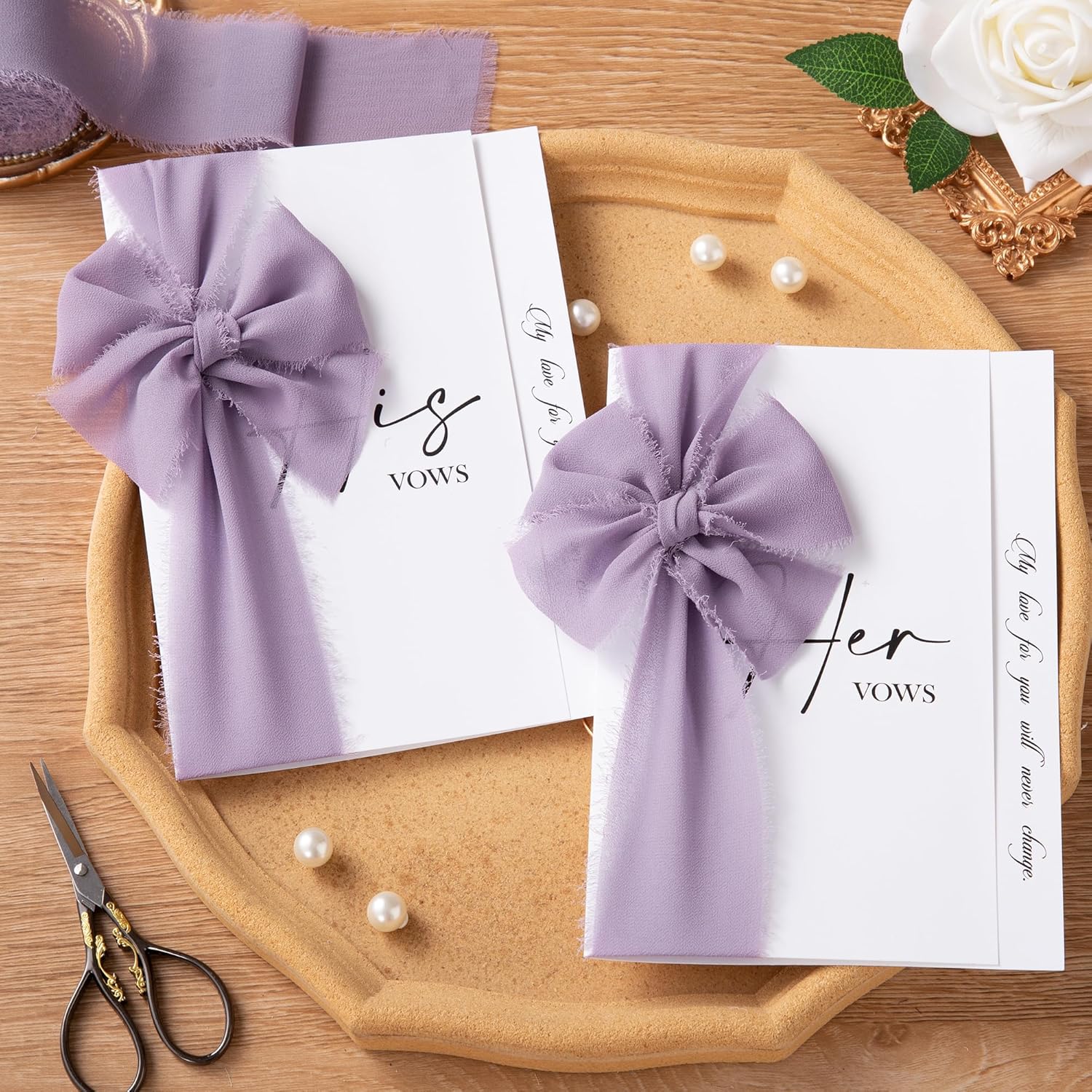 - 【Size and Color】Each roll of chiffon ribbon is 2 inches wide and 7 yards long, perfect for various creative uses such as making bows, decorating wreaths, and DIY crafts. This set includes 3 rolls pastle purple ribbons. These vibrant frayed ribbons add a rustic charm to your creations, ideal for bouquet wrap or gift ribbon.