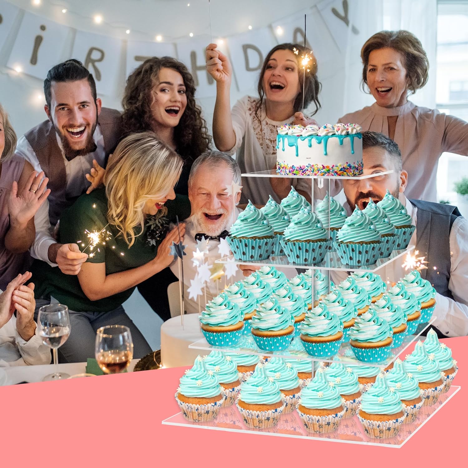 - Tower Design: Our cupcake stand has four acrylic plates with 4.7" distance between them. You can remove any of the superior plates and reassemble them freely. Each pastry rack is made with premium 4 mm thick acrylic, being very durable and resistant.