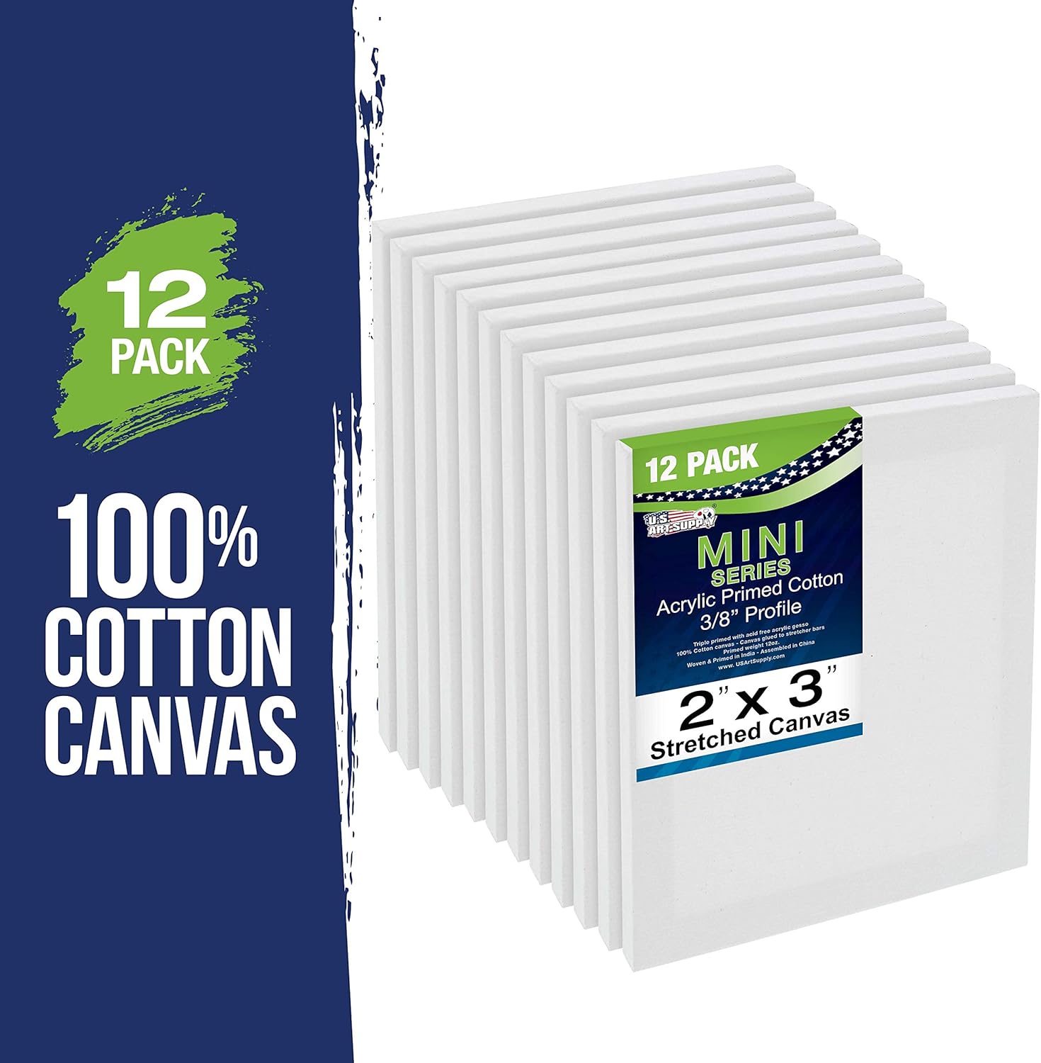 - (12 Pack) 5" Mini Easel with 2" x 3" Stretched Canvases Kit: Each kit contains a 5" natural wood tabletop easel. The kit also includes 2" x 3" stretched artist canvas with a 3/8" profile that's triple primed with acid-free acrylic gesso.