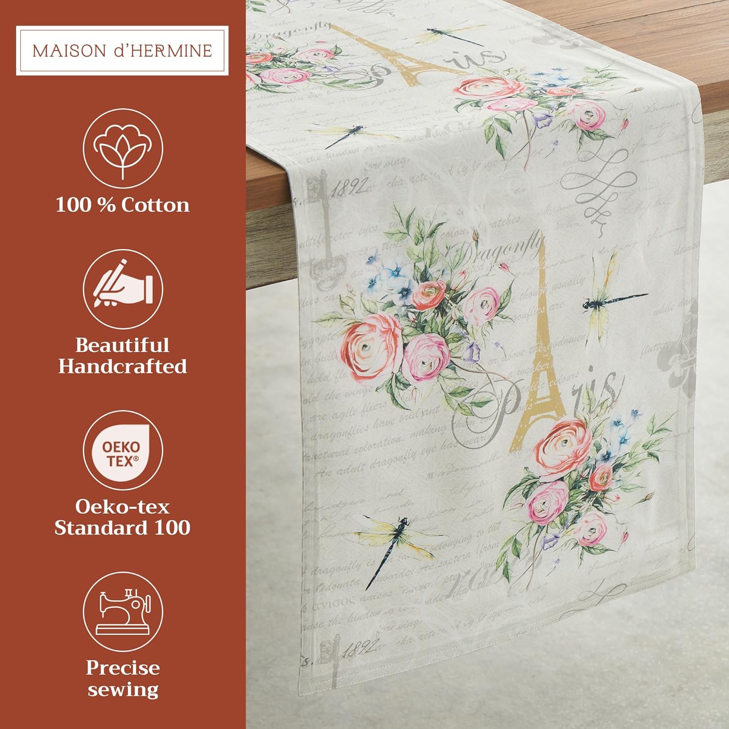 Maison d' Hermine Table Runner 100% Cotton Double Layer Table Runners 108 inches Long Decorative for Home Kitchen Dining Party Wedding Bridal Shower Spring Summer (Champ De Mars, 14.50" x 108")
