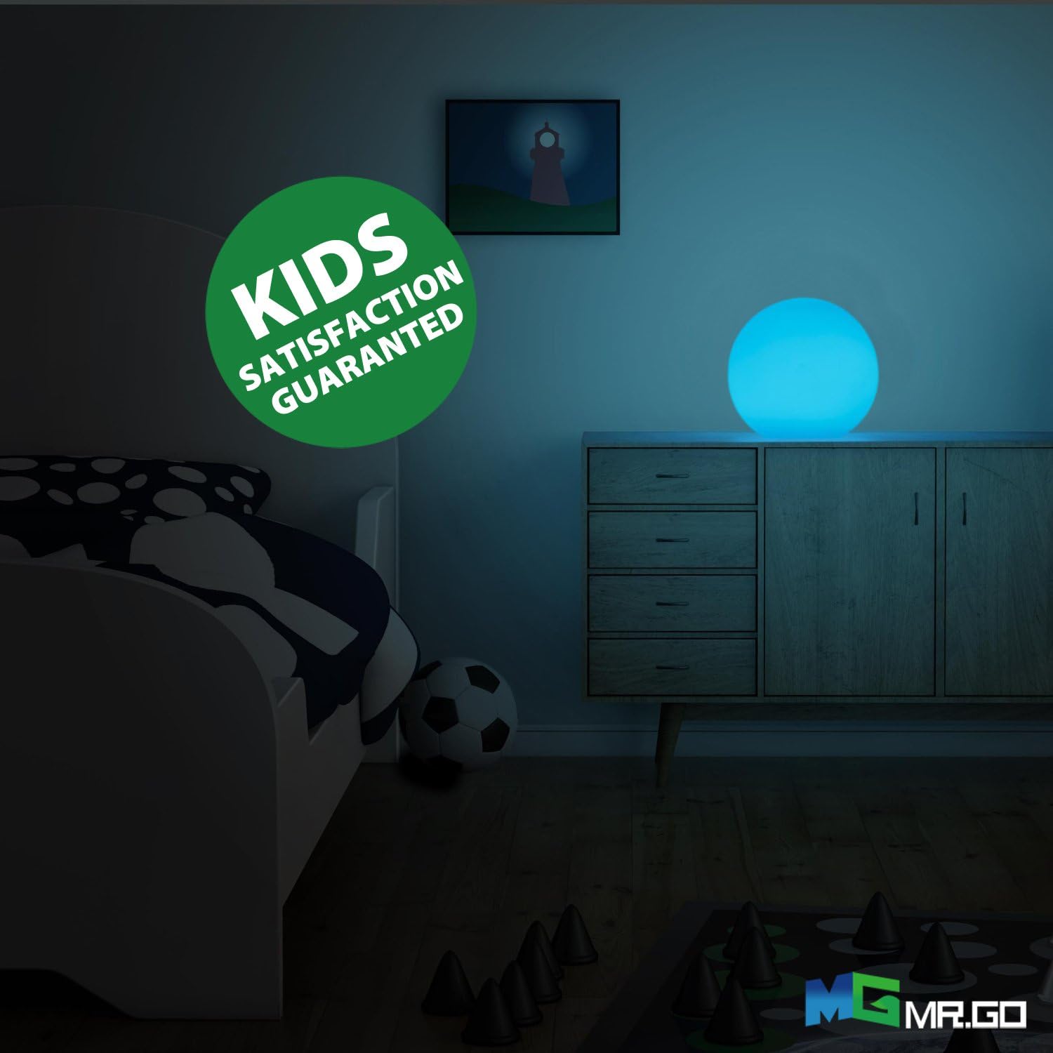 Mr.Go 6-inch RGB Color-Changing LED Globe Orb Light w/Remote, Mood Lamp Kids Night Light, 16 Dimmable Colors & 4 Modes, Battery & AC Adapter Power, Home Bedroom Patio Pool Decorative Lighting