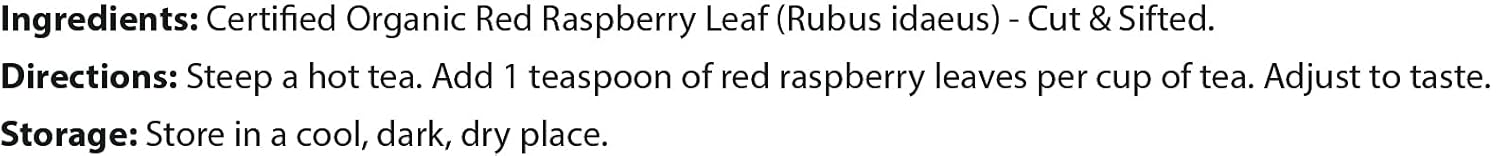 - IMPORTED FROM BULGARIA - This bag contains certified organic, cut and sifted red raspberry leaf from Bulgaria.