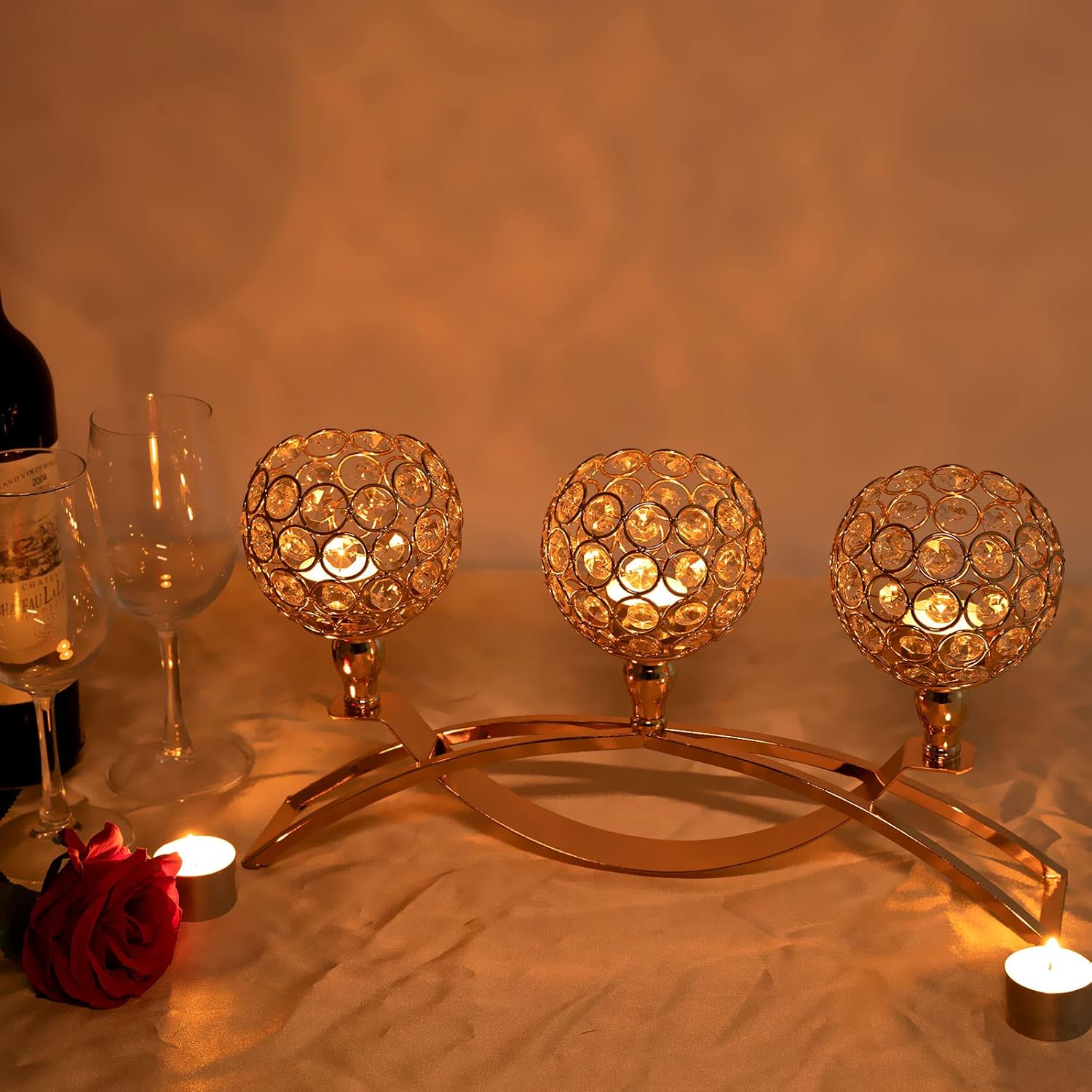 - 【 ELEGANT and UNIQUE DESIGN】➢➣➤ The modern design of this arch candle holder is inspired by an iron bridge: crossover arch shape can ensure the holder solid and stable. Upper 3 individual sparking crystal bowls makes it gorgeous