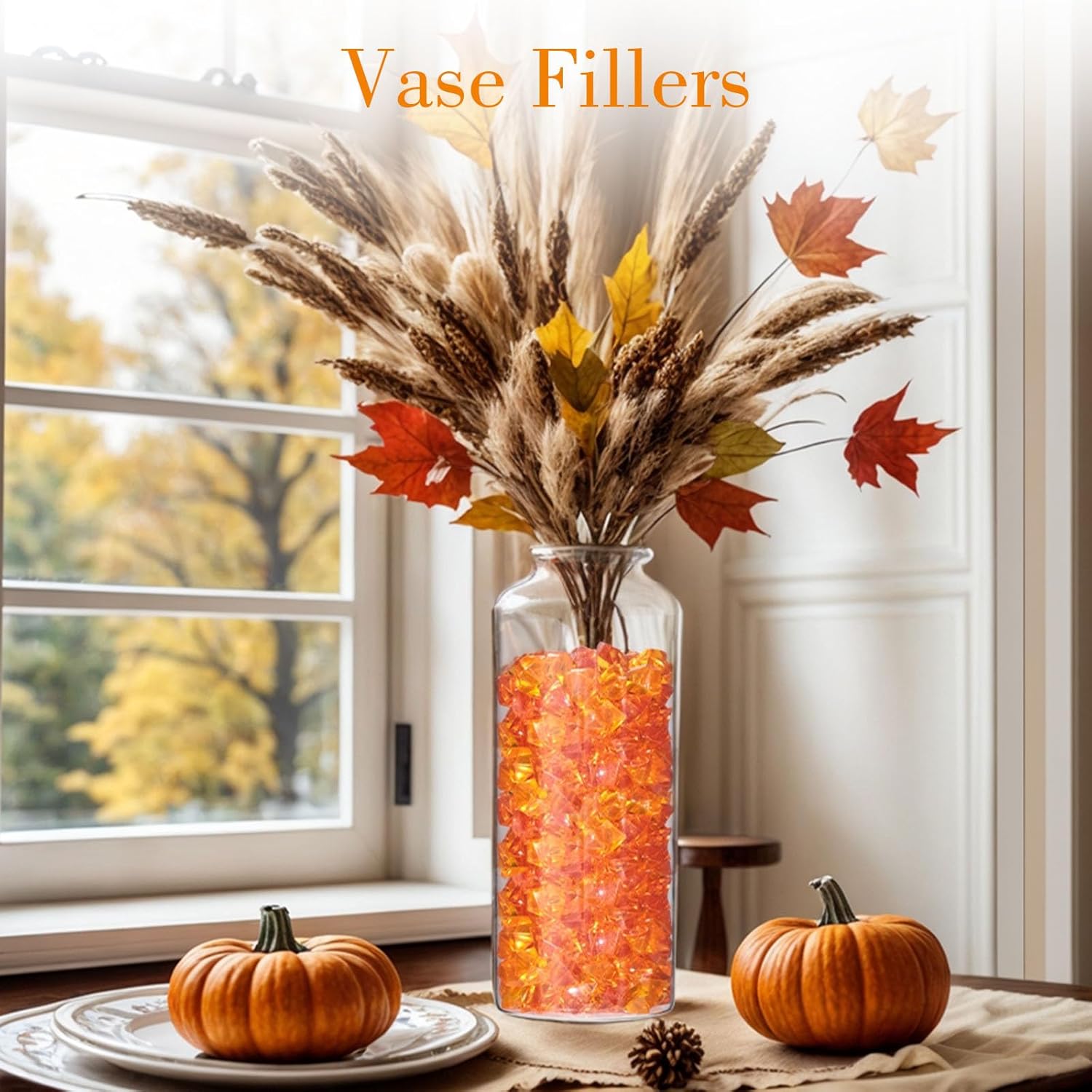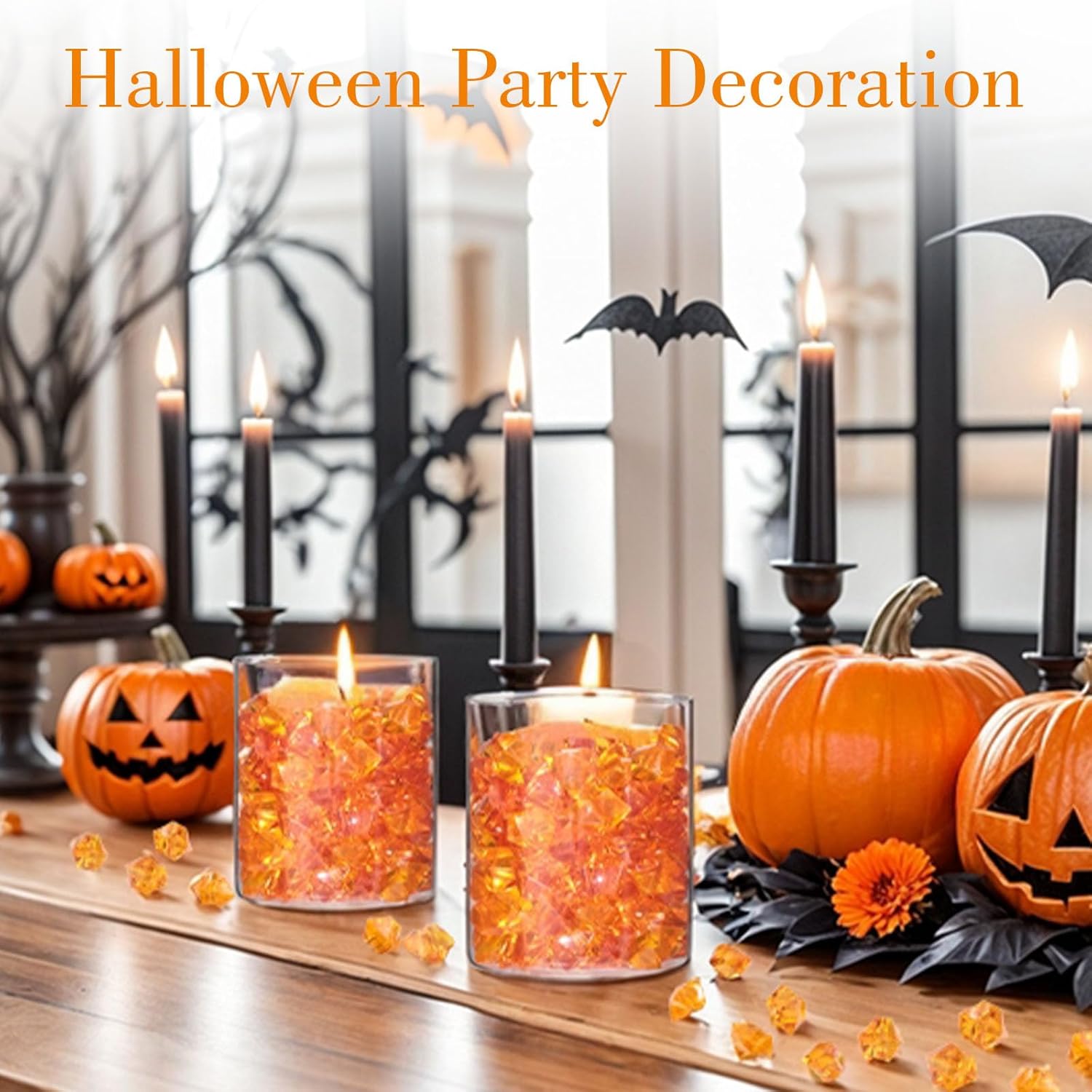 DomeStar Orange Fake Crushed 150 PCS Fake Diamonds Plastic Acrylic Clear Ice Rock Diamond Crystals Fake Ice Cubes Gems for Home Decoration Wedding Display Vase Fillers