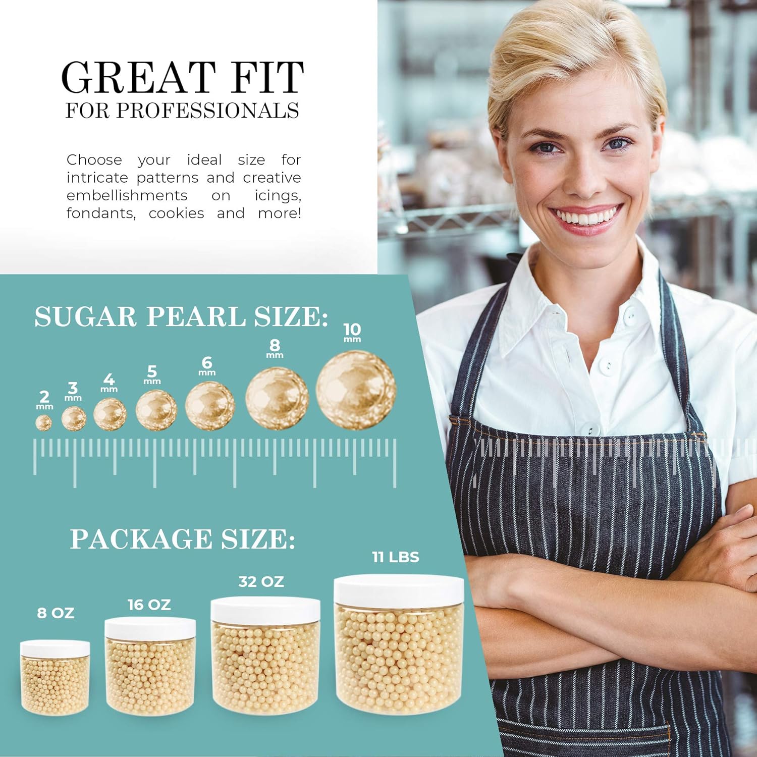 - 🎂 DECORATE MORE – Unlike other toppings, each pack of our cake supplies contains enough sparkling balls to adorn many treats. Bedeck more desserts with our 8 oz. ivory sugar pearls.