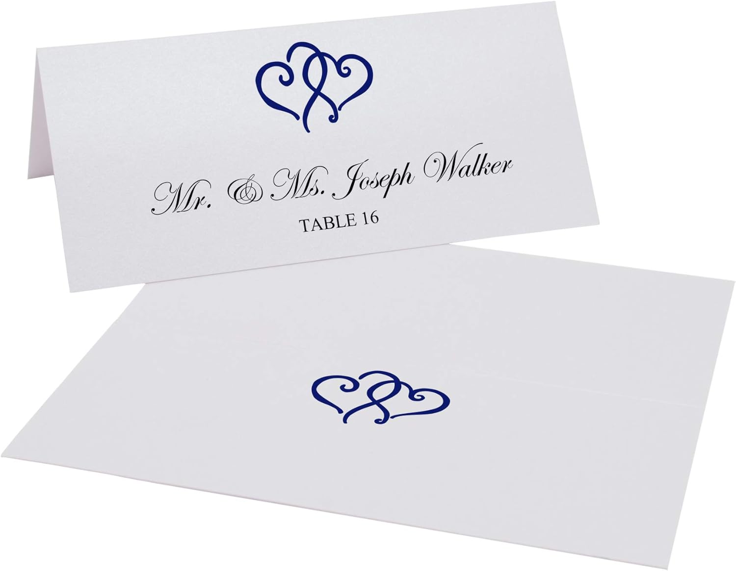 Linked Hearts Printable Place Cards, Navy (Choose Color), Set of 150 (25 Sheets), Laser & Inkjet Printers - Wedding, Party, Dinner, and Special Events - Made in the USA