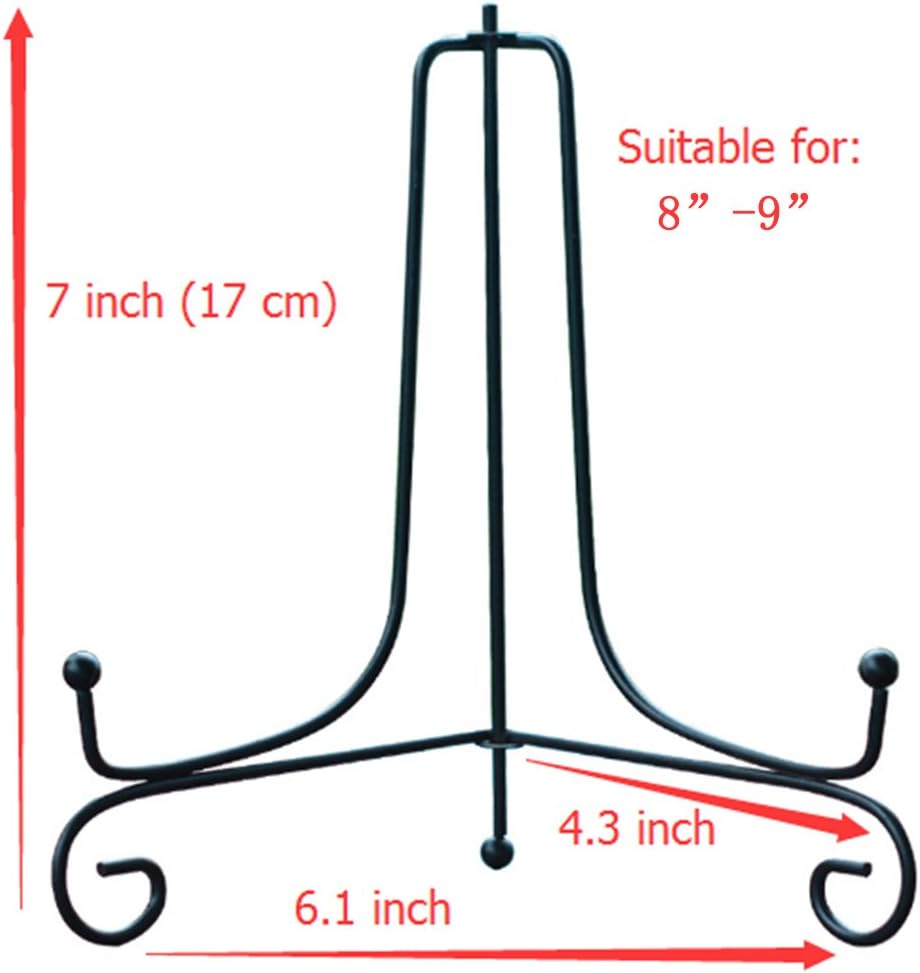 (4 pack)7"Iron Display Stand, Black Iron Easel Plate Display Photo Holder Stand, Displays Picture Frames, Cookbooks, Decorative Plates, Tablets and Art