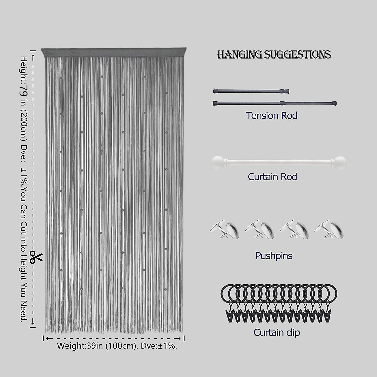 Beaded Curtain Beads Door String Curtains Ideal for Living Room Decor Wall Hanging Fringe Doorway Divider Bedroom Backdrop Hippie Window Closet Privacy Rod Pocket Dense (100x200cm,Grey)