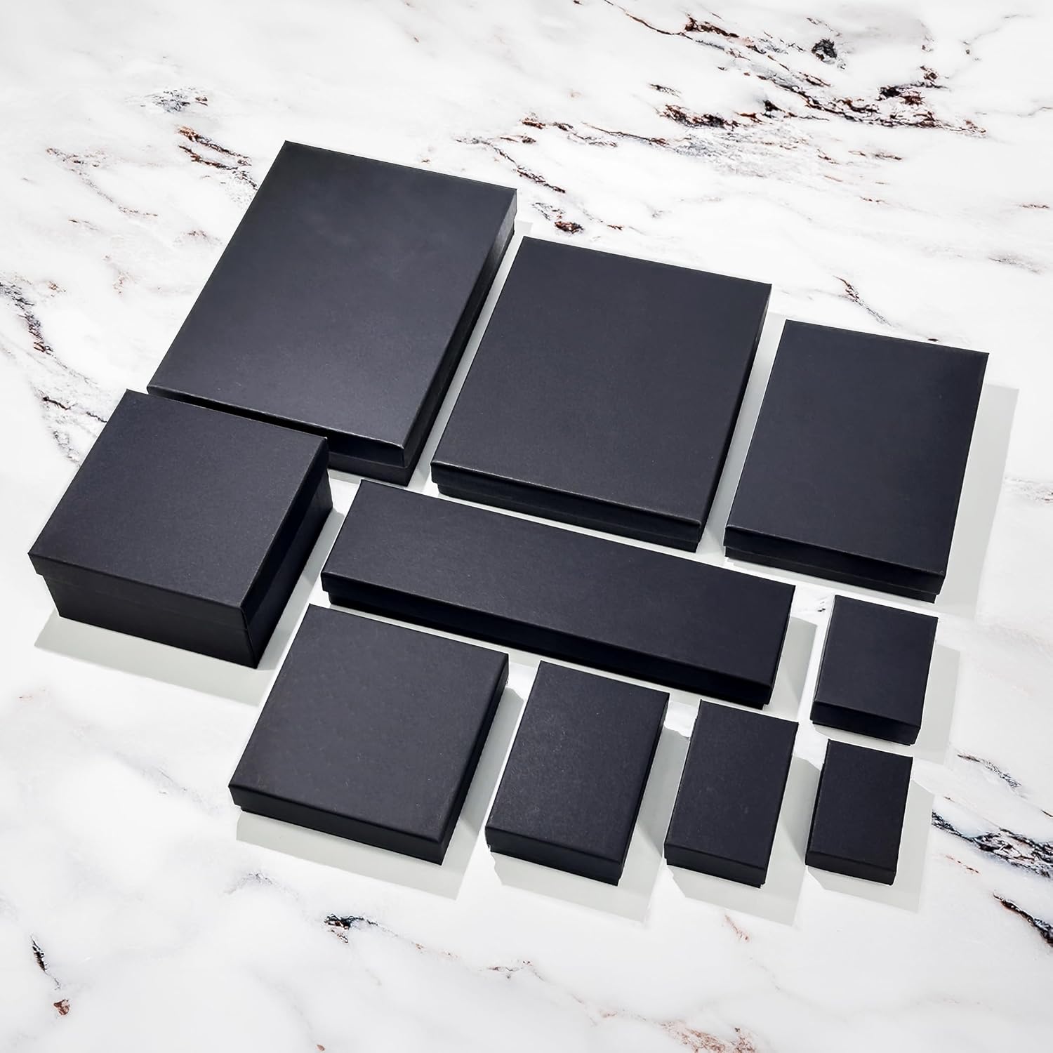 TheDisplayGuys - 25-Pack #53 Kraft Paper Cardboard Gift Boxes/Jewelry Cases w. Cotton Padding & Lid - Matte Black - (5.4" x 3.9" x 1.0")