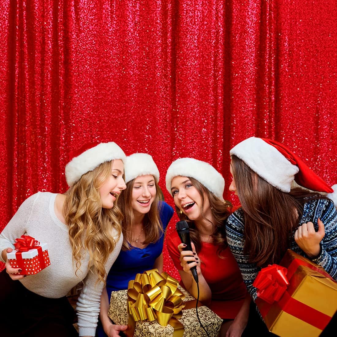 Poise3EHome Red Sequin Backdrop, 10Ft x 10Ft Glitter Photography Background Curtains for Party Wedding Birthday Christmas Valentines Day Decoration