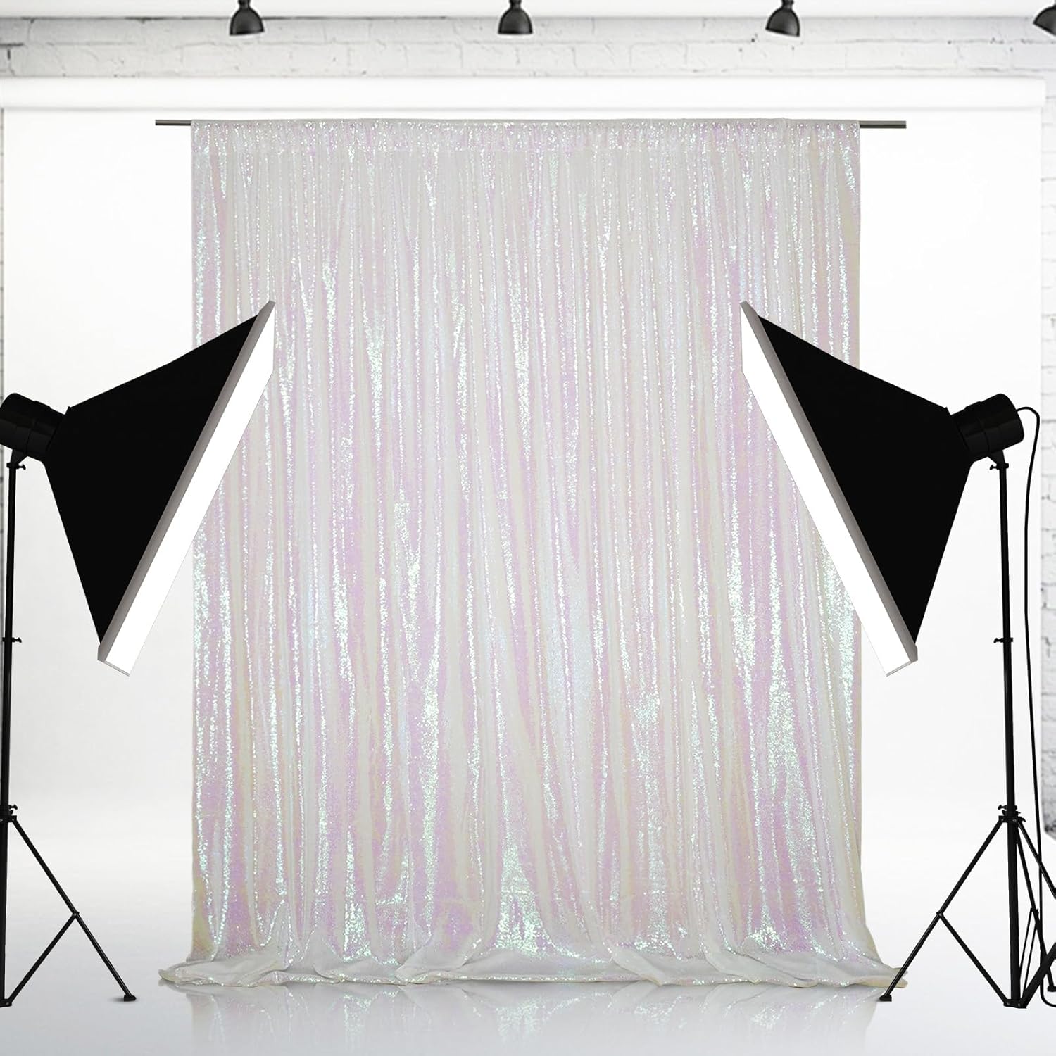 Eternal Beauty White Iridescent Sequin Backdrop, 7x7 Ft Glitter Background Curtains for Shimmer Photography Party Wedding Birthday Back Drop Decor