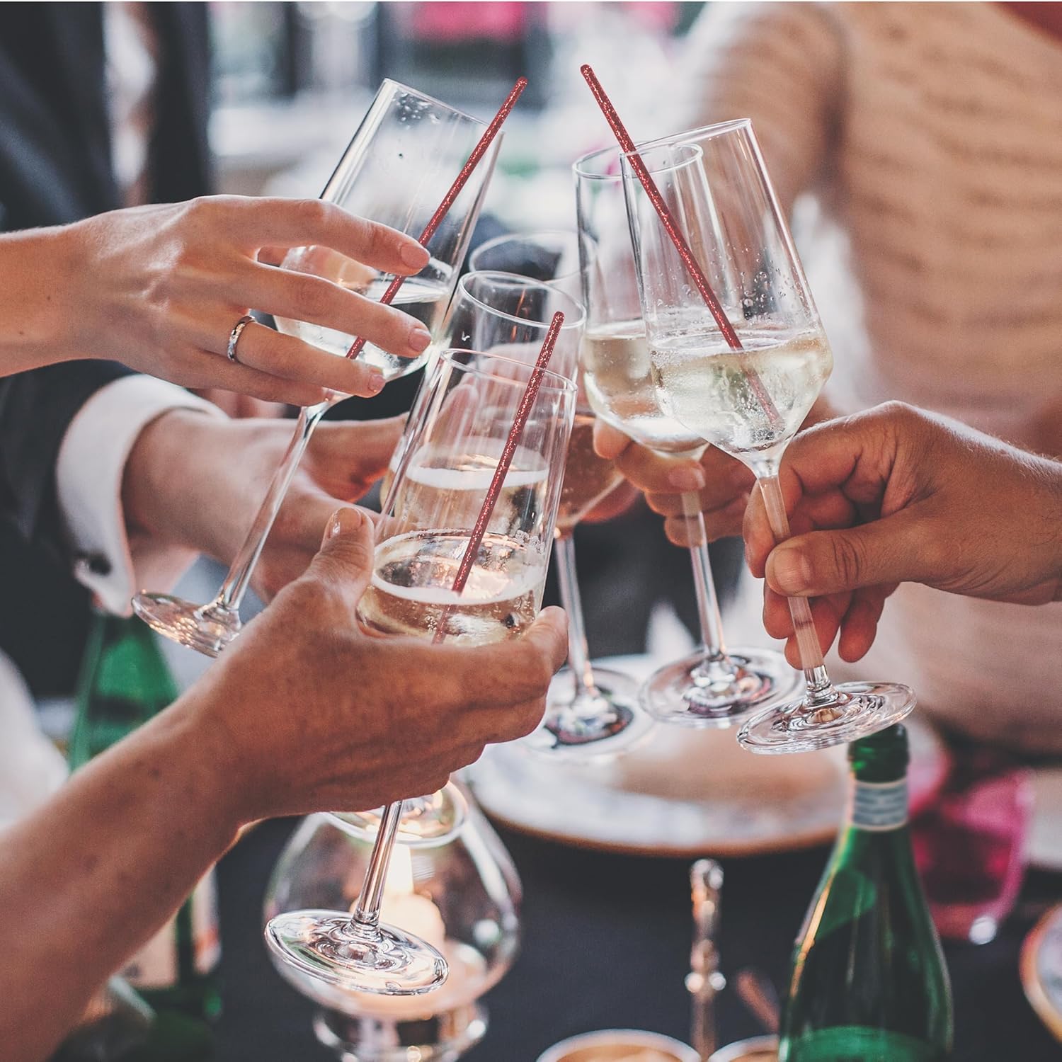 - FUN AND DURABLE 6-inch long, crystal party sticks are made of reusable plastic and are premium quality. Each package includes 100 festive drink mixer sticks molded in pink, gold glitter or clear plastic.