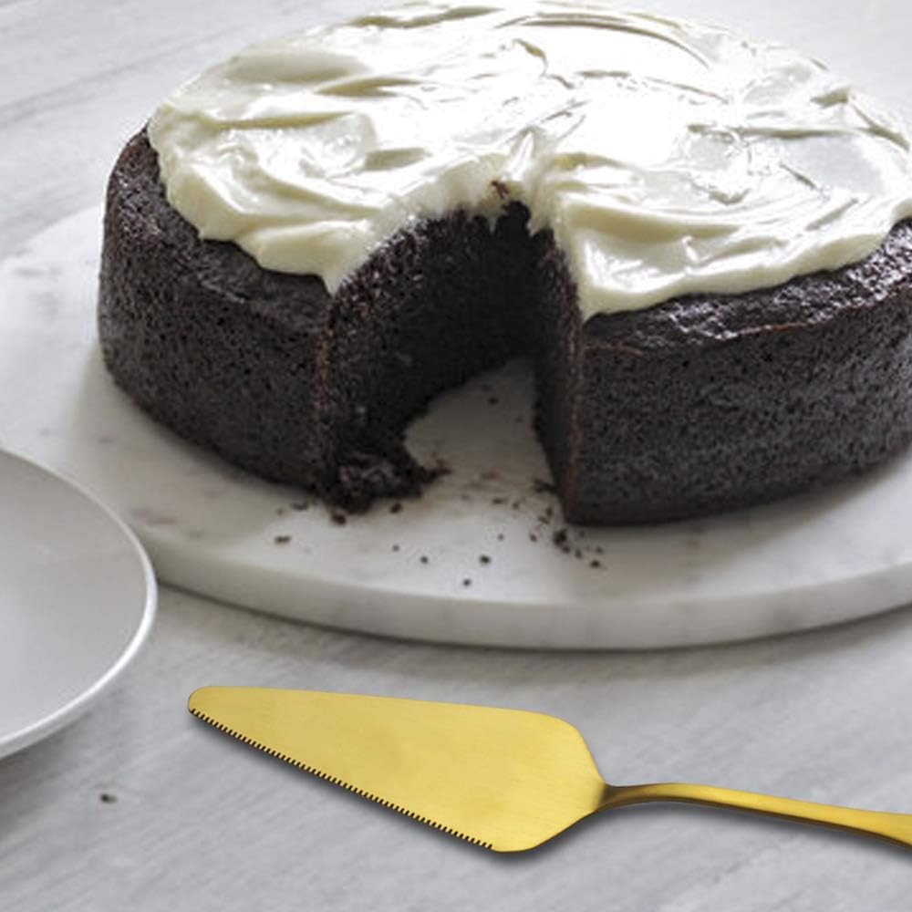 - Perfect Large Size for Gold Cake Server: 8.93inch Length and 1.9inch Width. Made from High-polish Mirror Finish Food Stainless Steel, Net Weight: 2.07oz.