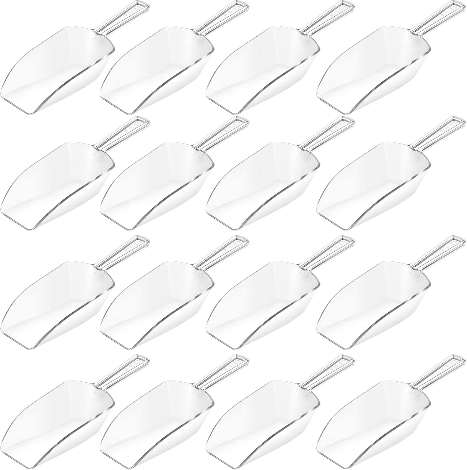 Hestya 16 Pcs Christmas Multi Purpose Clear Plastic Scoops for Candy Buffet Acrylic Kitchen Ice Food Popcorn Scoops for Protein Powders, Ice Cream, Coffee, Tea Jar (4.3 Inch)