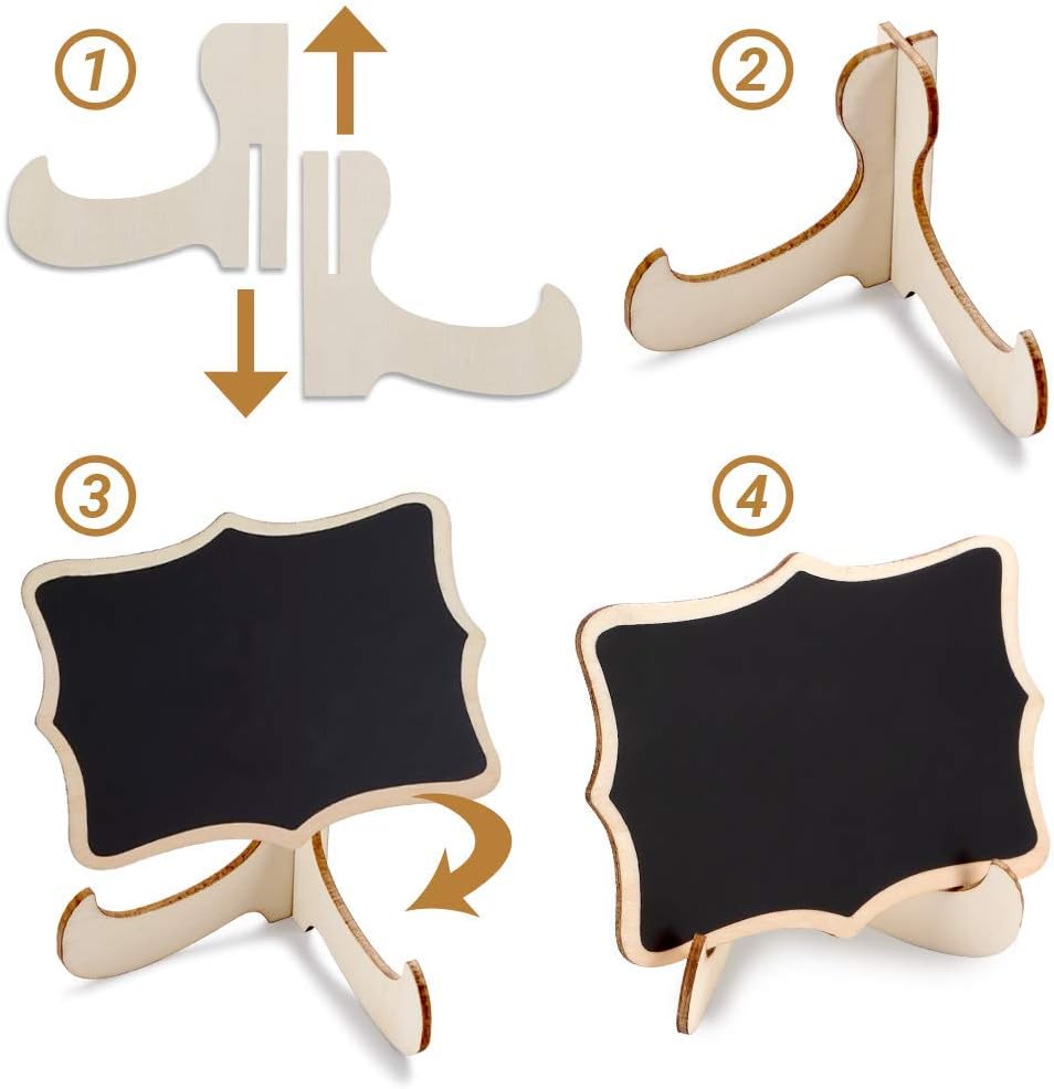 - Easy to Carry and Store: These awesome small blackboard signs have removable stands which allow them to stand up well on a table making them so convenient to use. The little easels can also be folded down flat, which makes them easy to store or carry. You can place the framed chalkboard horizontally or vertically and use them as wedding signs, table numbers, name tags, place cards, favor tags, plant decorative signs, food labels, and so on.