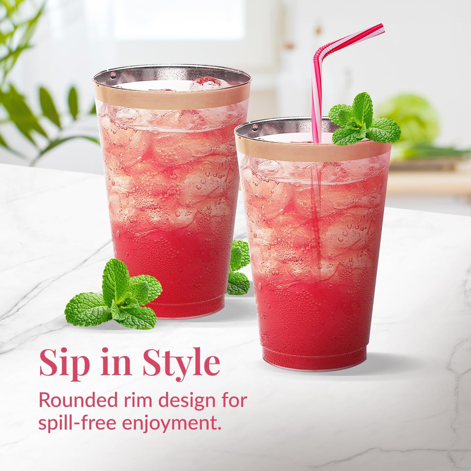 - Perfect for Elegant Events: Impress guests with fancy plastic cups that elevate weddings, banquets, or showers; their rose gold trim adds refined detail to both indoor and outdoor celebrations