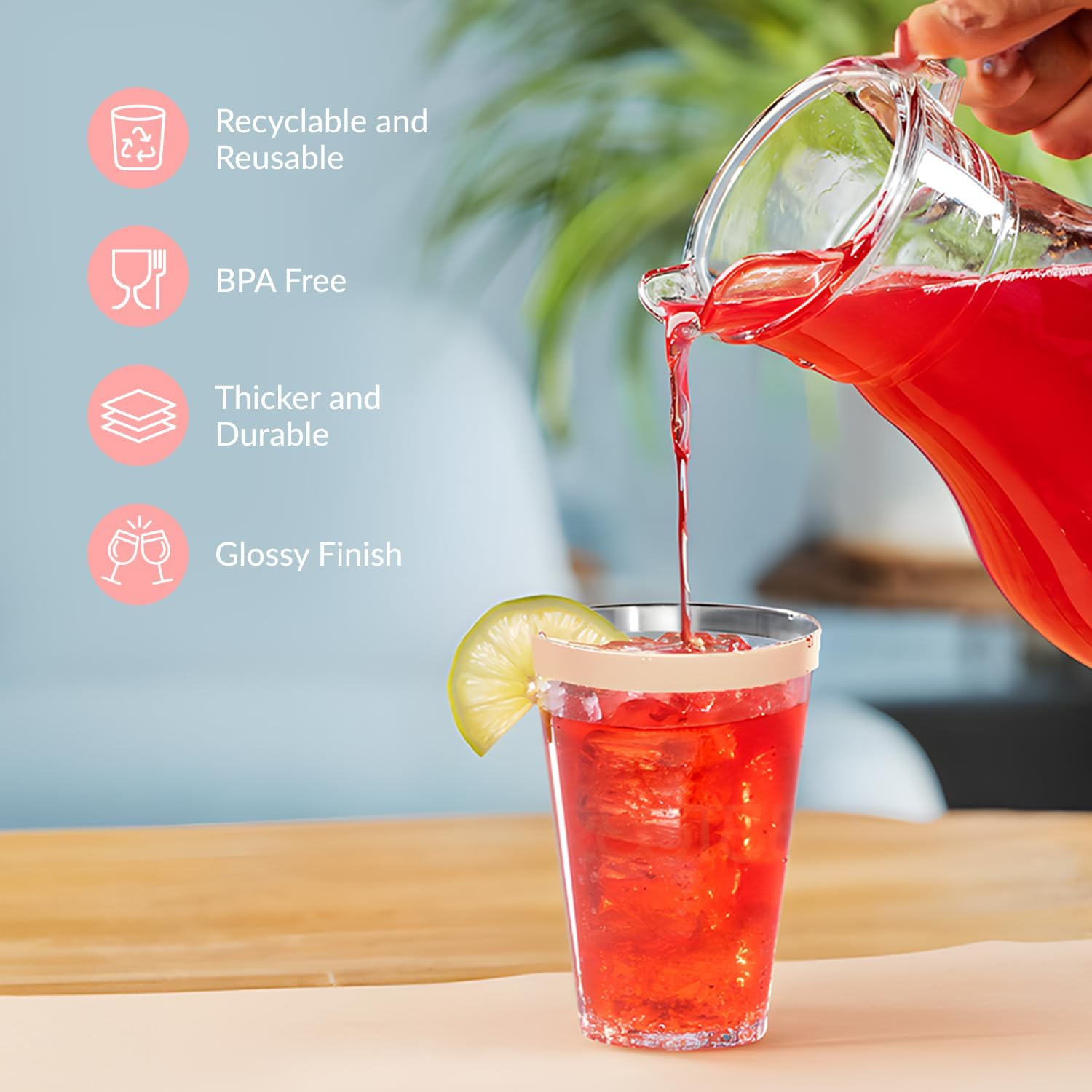 - Sophisticated Design with Trim: These rose gold cups disposable feature a clear base and metallic rim, offering a polished look for stylish party setups with no cleanup stress afterward
