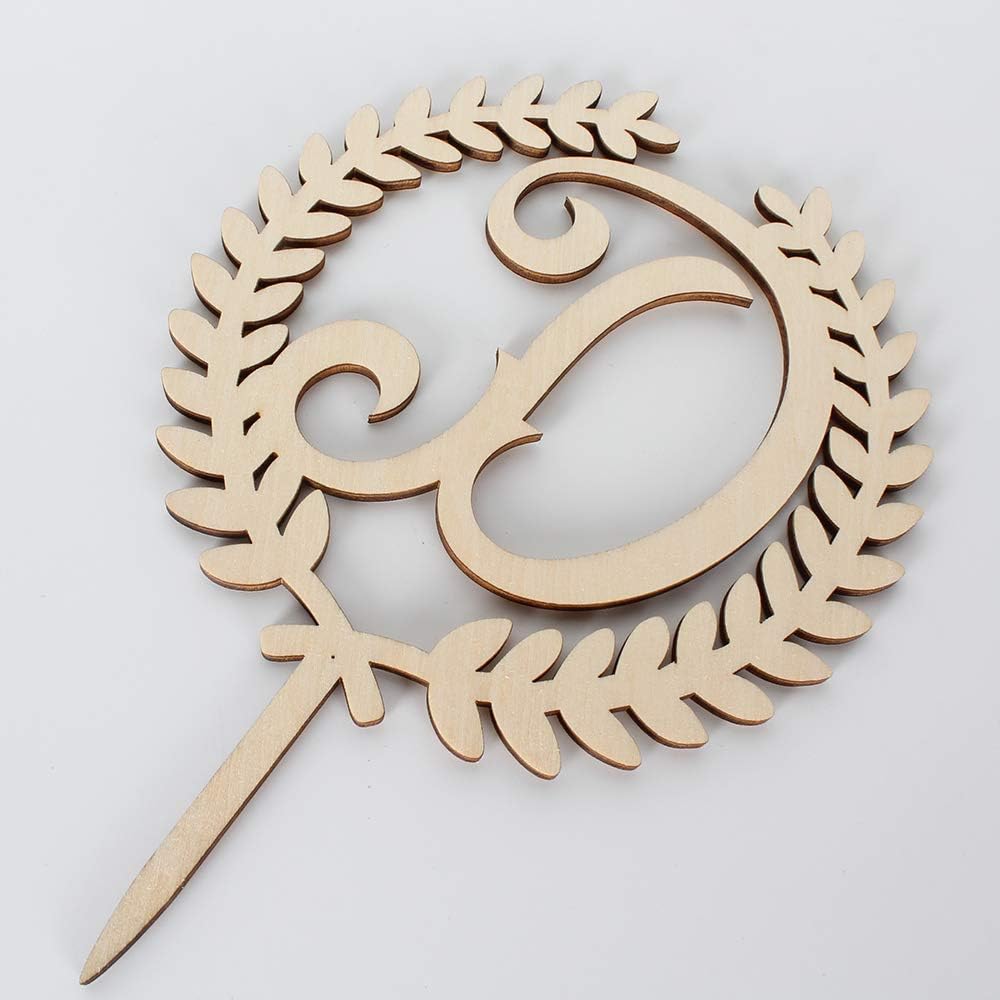 LINGTEER Personalized Inital Letter D Wooden Cake Topper Perfect for Birthday Rustic Wedding Anniversary Party Keepsake Decoration