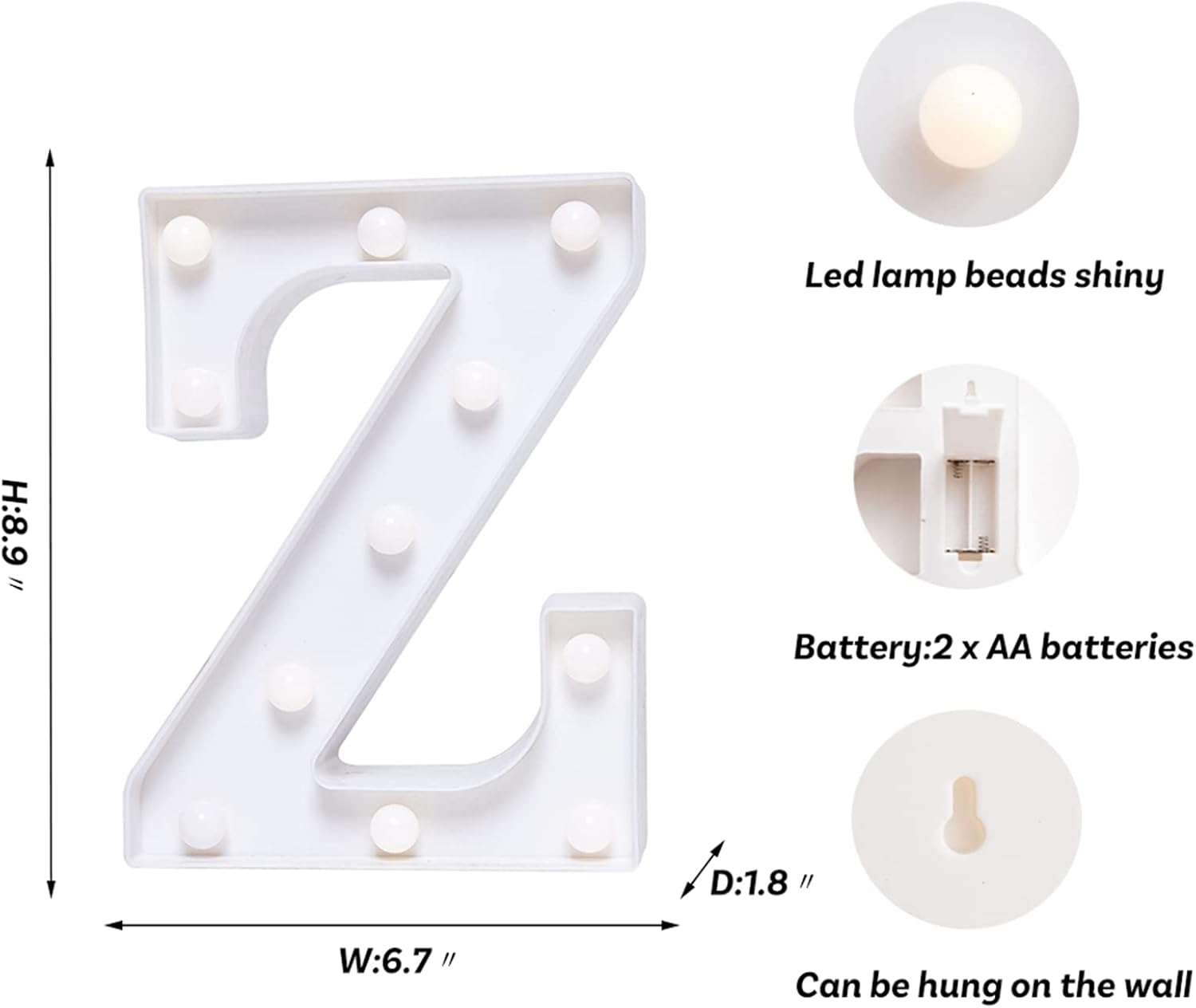 Foaky LED Letter Lights Sign Marquee Light Up Letters Sign for Night Light Wedding/Birthday Party Battery Powered Christmas Lamp Home Bar Decoration(Z)