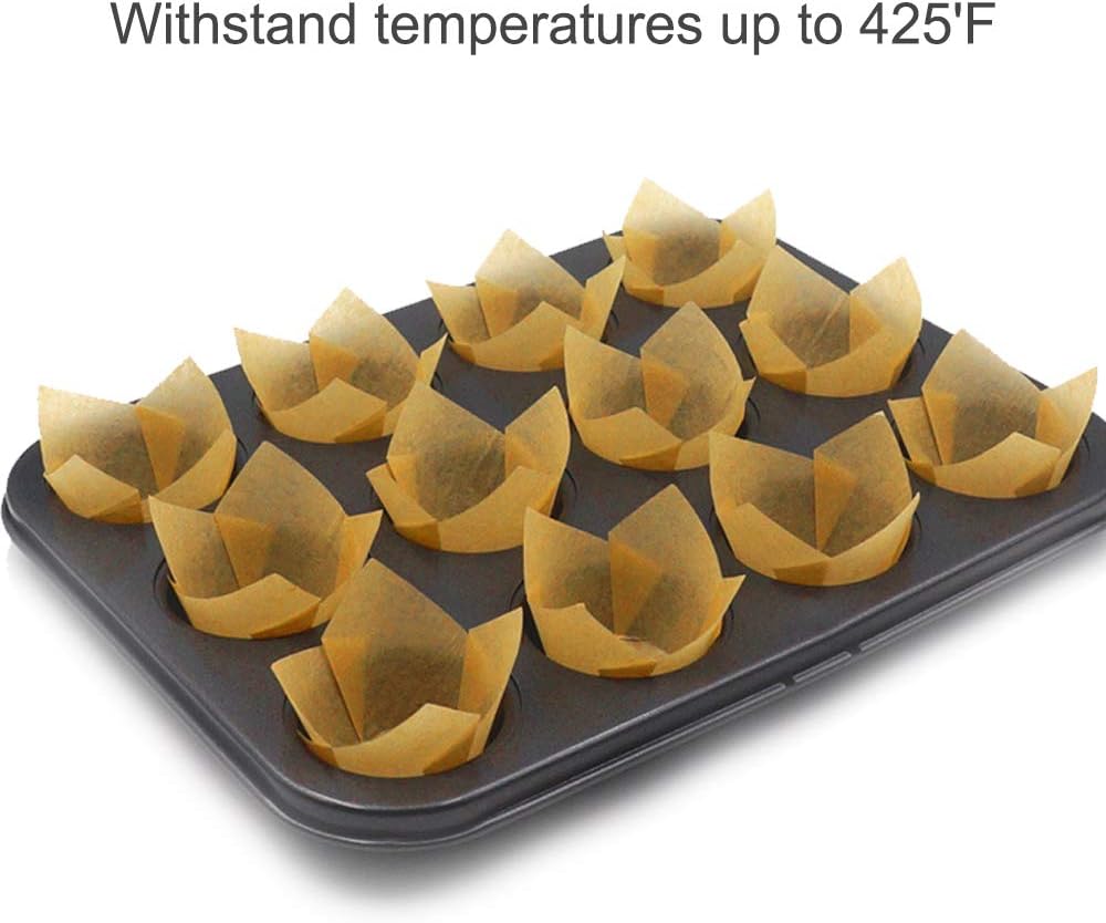 - Standard size tulip baking paper cups - 1.96 x 2.98 x 3.1 inch (bottom x top x height), suitable for all kinds of standard muffin/cupcake baking pan, pack of 150.