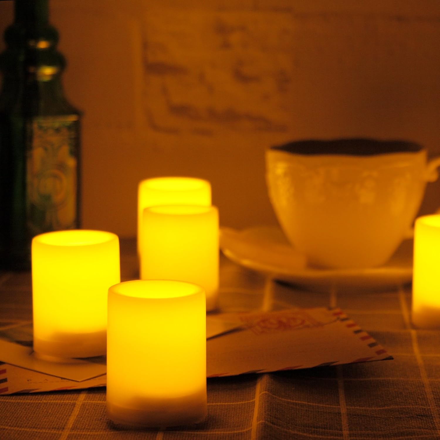 CANDLE CHOICE Battery Operated Flameless Votive Candles with Timer Long Lasting Realistic Flickering Electric Tea Lights Set Halloween Christmas Wedding Decorations Centerpieces Batteries Incl. 6 PCS