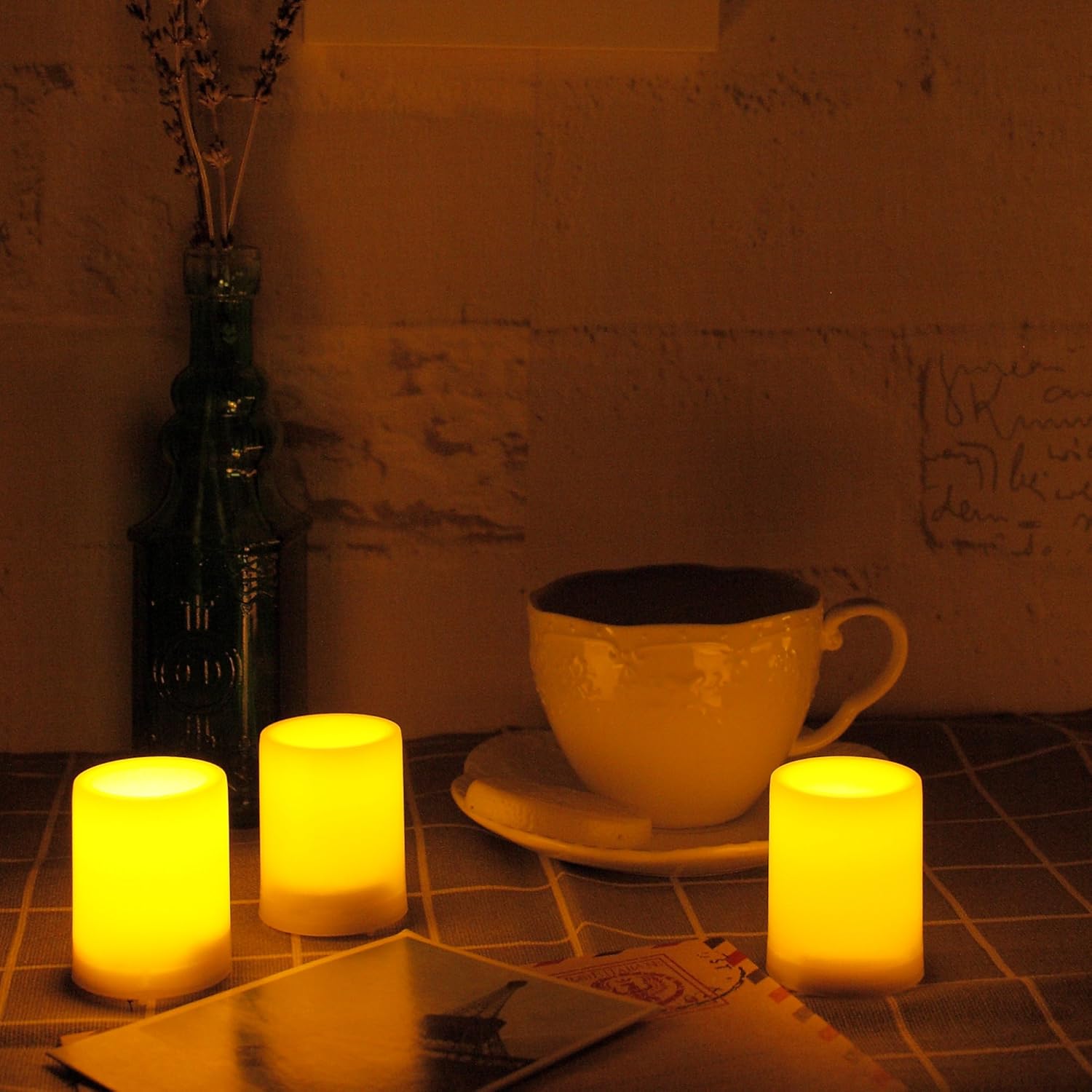 - Flicker like real candles but better than real wax candles. These electric votive candles are made of high quality, durable, wax like plastic, and bright flickering bulbs. They look like and flicker like real candles. Compared the real wax LED candles, plastic candles are more durable and can be used in more occasions. For example, resin candles will never melt under the sun therefore these plastic candles can be use outdoor when it does not rain or snow.