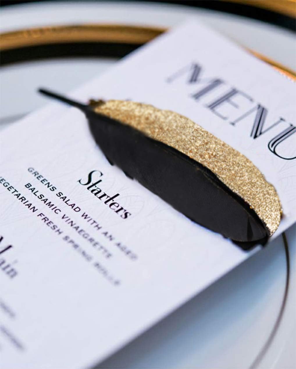 - Feature: The pure natural feathers have distinctive shapes with a decorative golden sheen and will make a stunning accessory for your party.