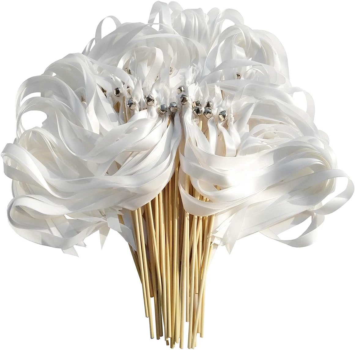 50PCS Ribbon Wands with Triple Ribbon and Silver Bell Party Wand Party Favors Streamers Ribbon Sticks Magic Fairy Wands for Wedding Decors