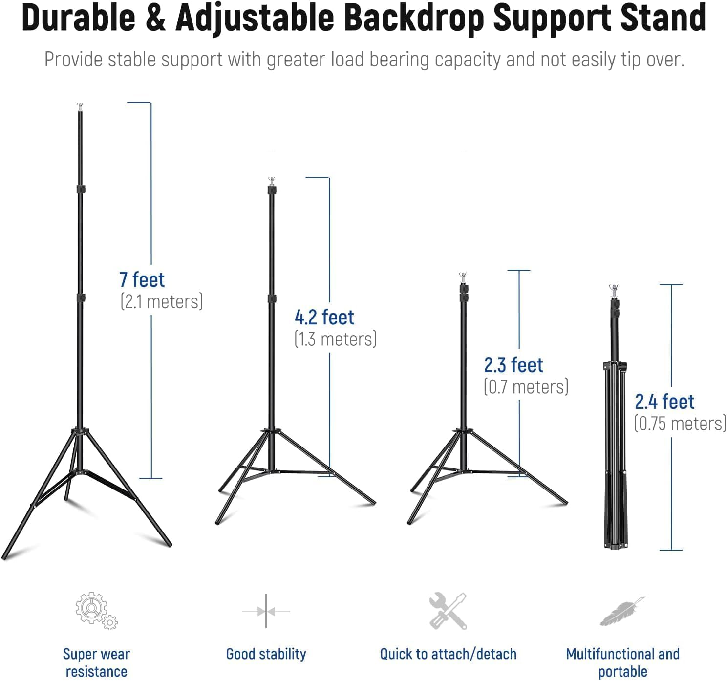 - Adjustable Height & Width: With adjustable height (27.56”–7’ / 70cm–2.1m) and width (5’–10’ / 1.5-3m), the backdrop support system holds your backdrop in place and helps you create different backgrounds for photography work