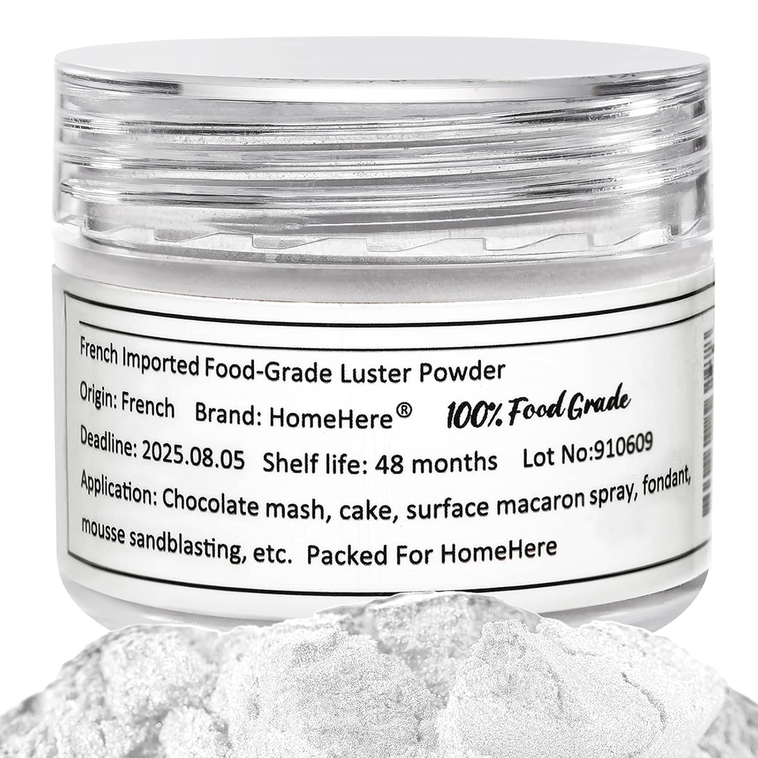 - FOOD-GRADE LUSTER CAKE DUST: 100% edible glitter powder, vegan, free from dairy, gluten, and common food allergens, safe to use in your creations, and will not alter the original taste of food! Net weight is 7g/0.25oz. This food-grade glitter adds a glamorous shine to cakes, cupcakes, cookies, cocktails, wine, champagne, and other baked goods. Mix well before use as dust may settle