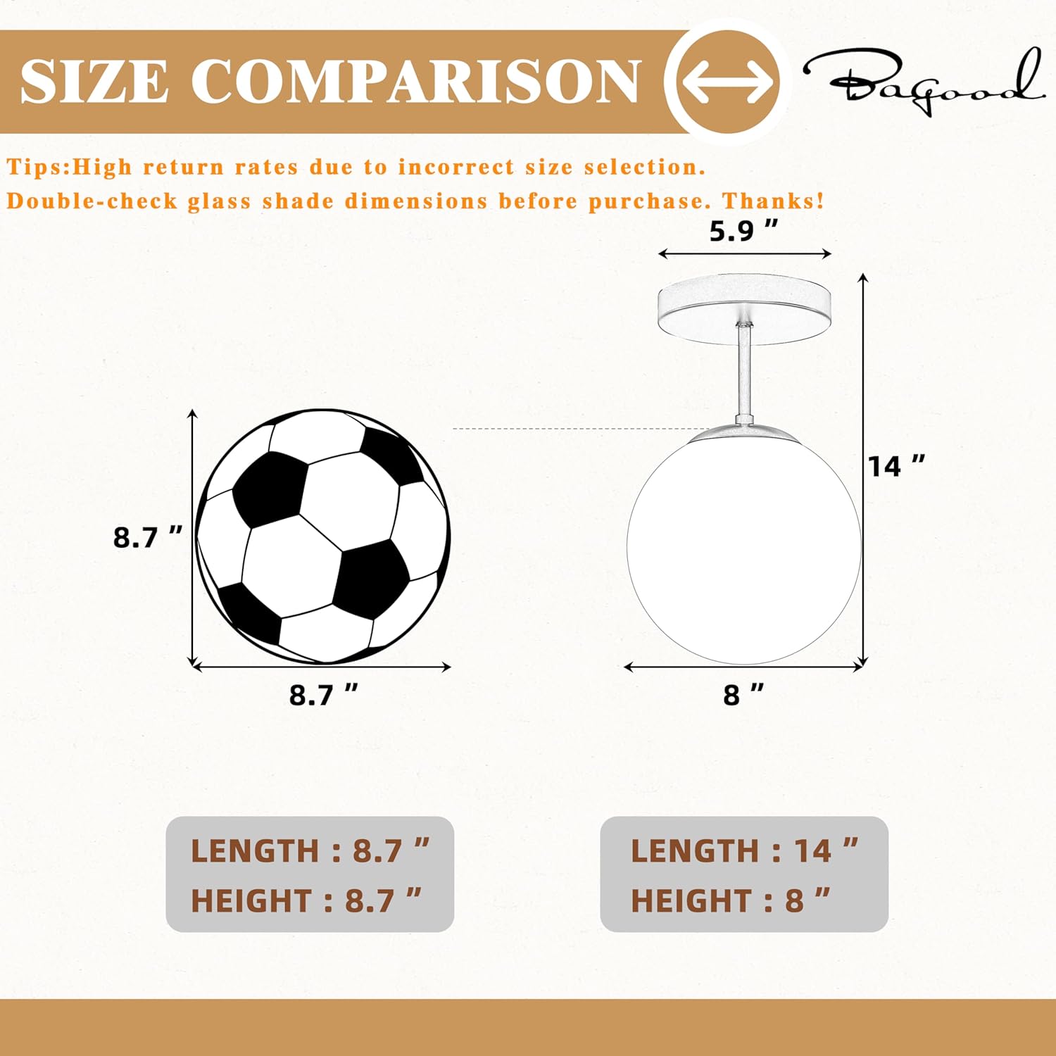 - SIZE:Frosted Glass Shade 7.8"Dia x 7.8"H. Rod 4"H. Ceiling Canopy 5.9"Dia x 1" (Can cover the wire hole on the ceiling).