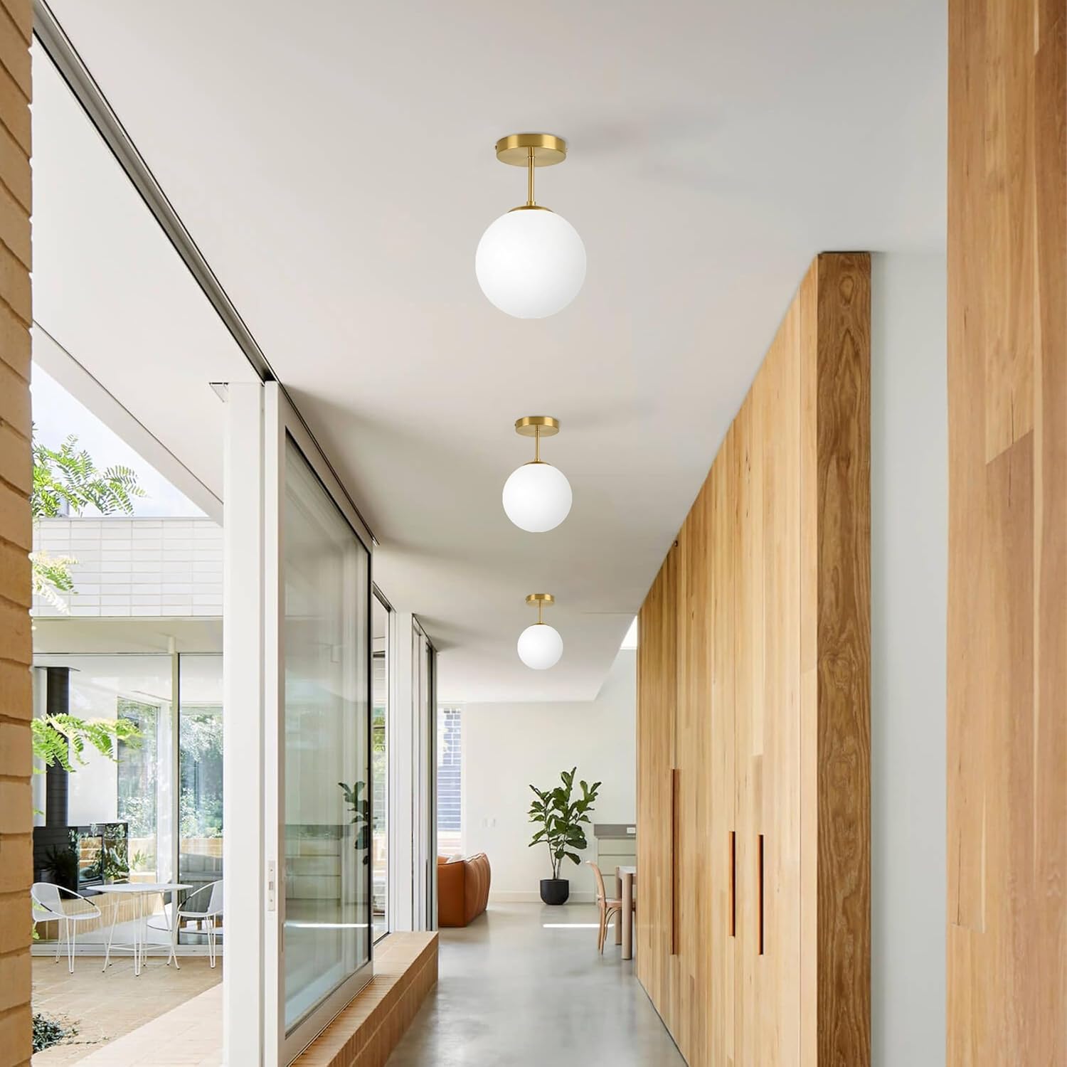 - CLASSIC DESIGN: Classic semi flush mount ceiling light with with matte gold and frosted glass. It creates a modern but simple look. It's suitable for installation in Aisle, Kitchen, Farmhouse, Restaurant, Island, Bedroom, Loft.