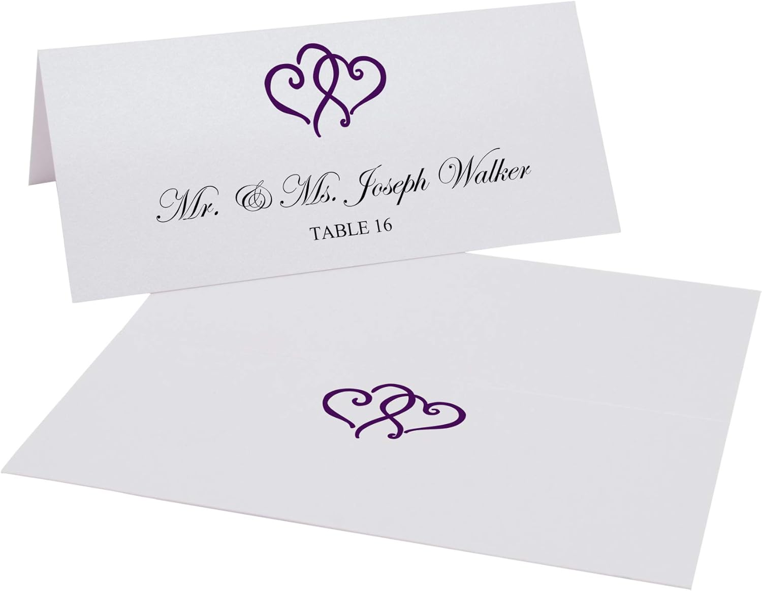 - Features two linked hearts at the top of each place card
