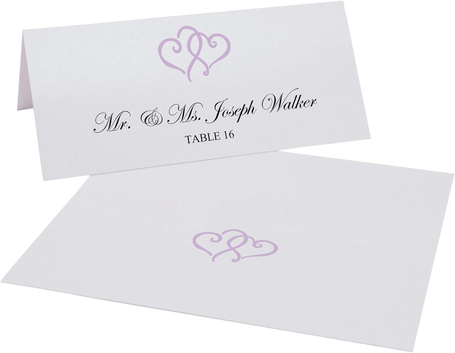 Linked Hearts Place Cards, Lavender (Choose Color), Set of 60, Pre-cut and Scored - Wedding, Party, Dinner, and Special Events - Made in the USA