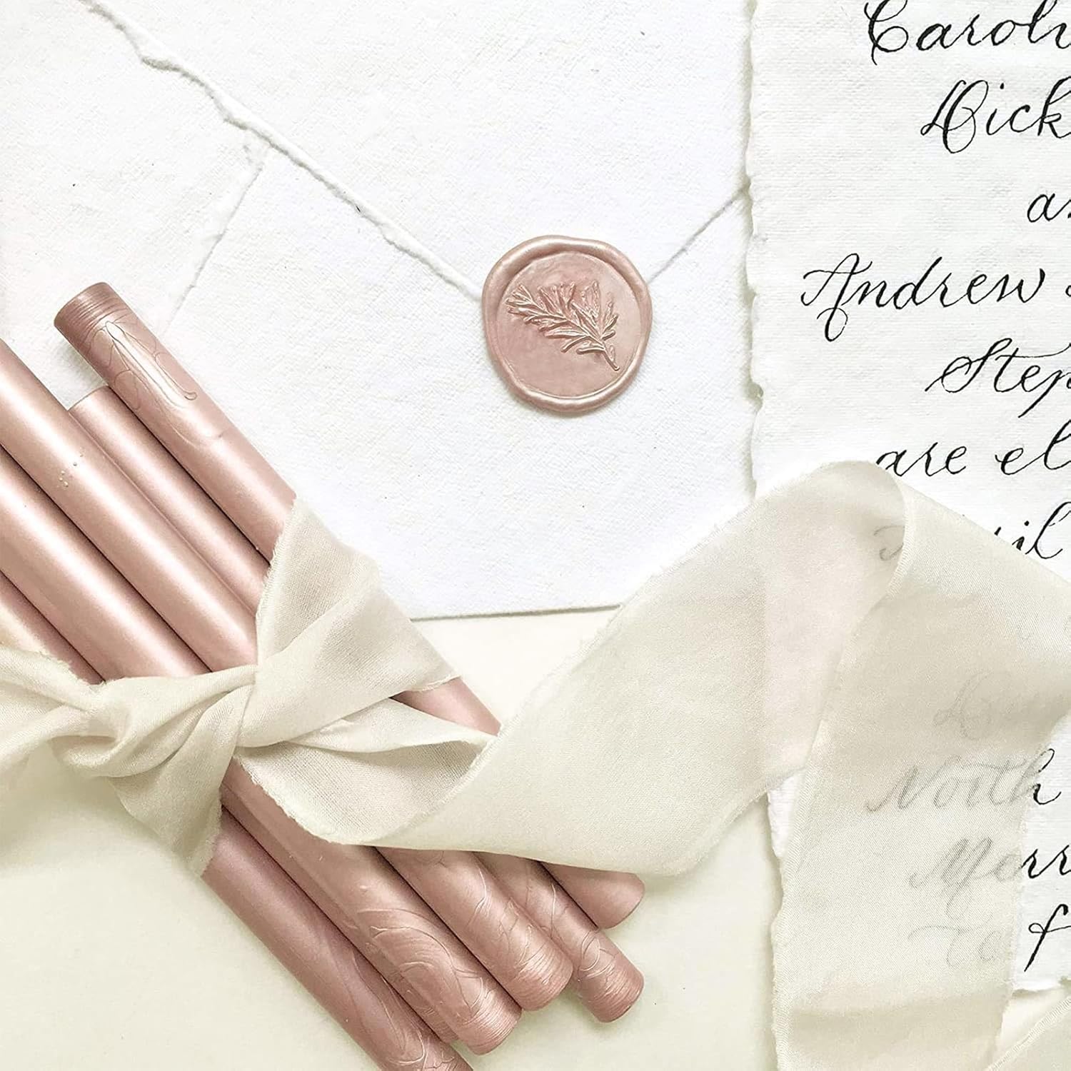 UNIQOOO Metallic Champagne Rose Glue Gun Sealing Wax Sticks for Wax Stamp, Wedding Invitation, Card Envelope, Snail Mail, Wine Package, Gift, Pack of 8