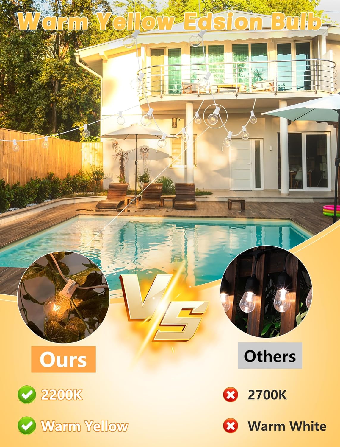 - EASY TO USE: G40 Patio String Lights are flexible and easy to use. AWG white wire and built in double fuse, all the remaining bulbs will continue lighting up and brightening up our life even if some bulbs broken or removed. It can be used for indoors decoration as well as outdoor ones