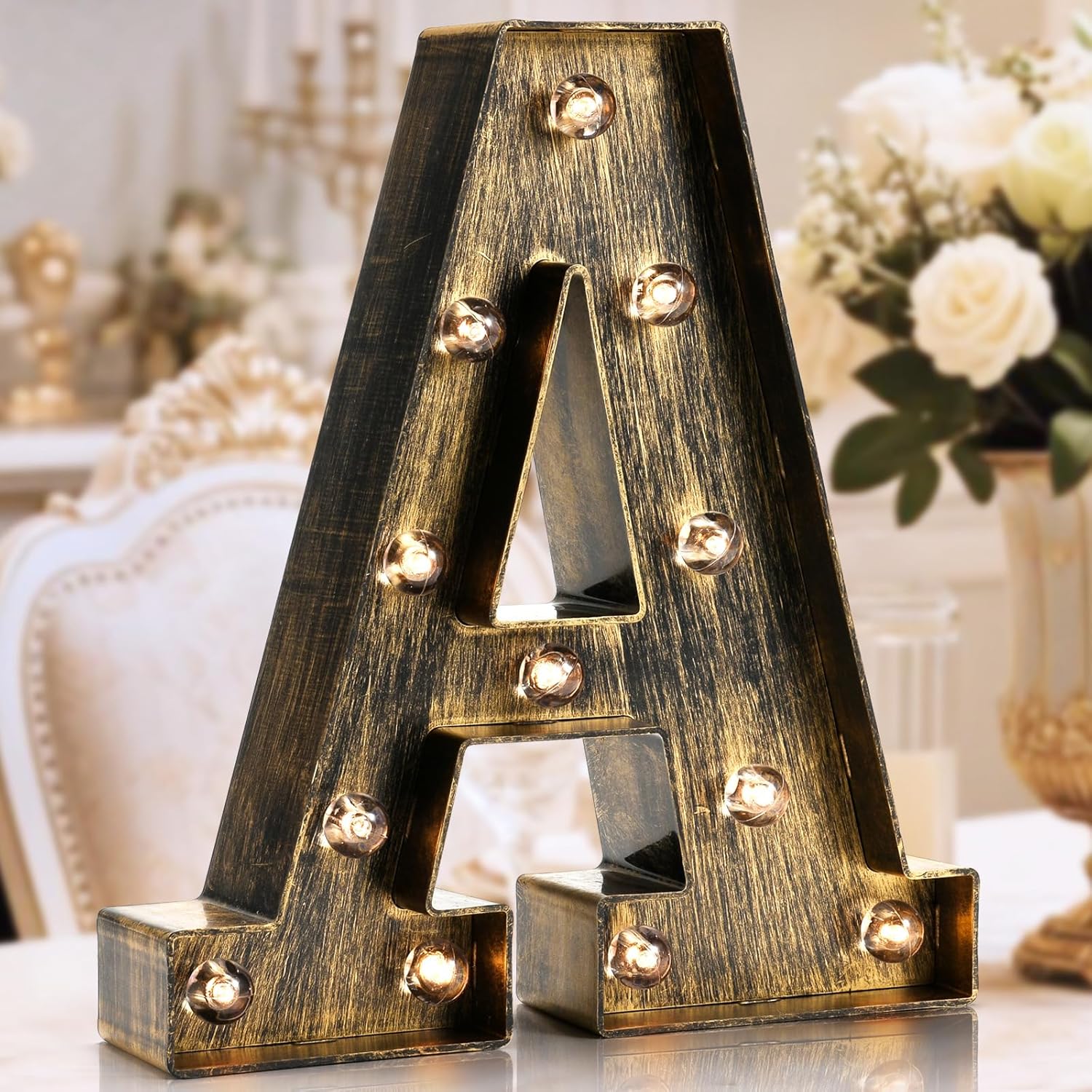 OYCBUZO Golden Black Led Marquee Letter - Industrial, Vintage Style Light Up Alphabet Letter Sign for Cafe Wedding Birthday Party Christmas Lamp Home Bar Initials Decor - A