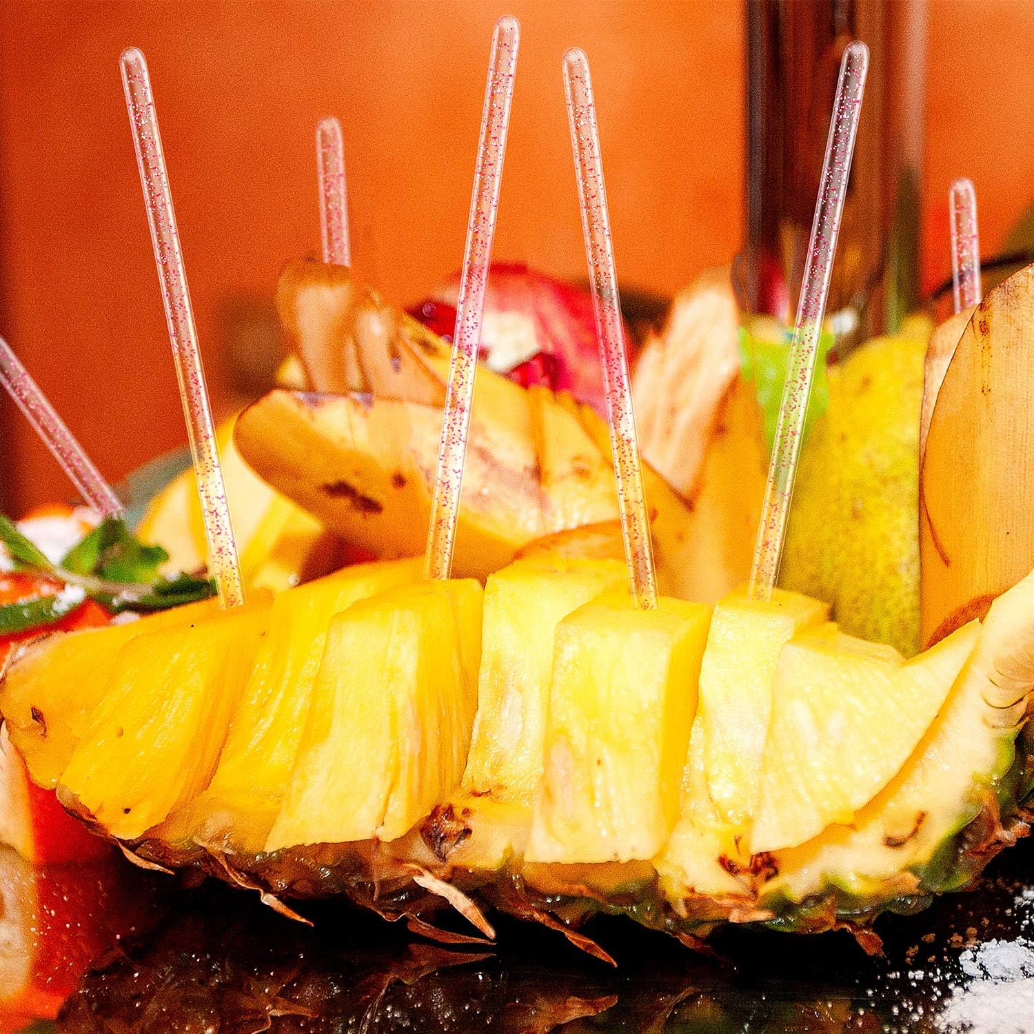 - Stir hot and cold drinks: plastic sticks in simple, stylish and contemporary design has a knob at the end to keep fruit and vegetable garnishes in place, nice for mixing drinks such as coffee, tea, mixed drinks, cocktails, hot chocolate and so on