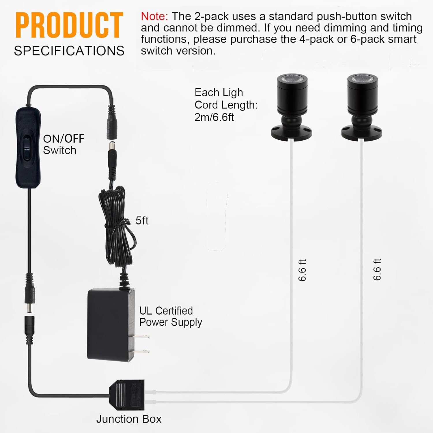 - 【Comfortable & Bright Illumination】Each display lights has 1.5 Watt,100 lumens and 6.6ft length cord.Soft White 3000K,with a Color Rendering Index of 85RA, our spotlights provide high-color accuracy and natural, non-flickering lighting, ensuring your eyes stay comfortable while enhancing your space.
