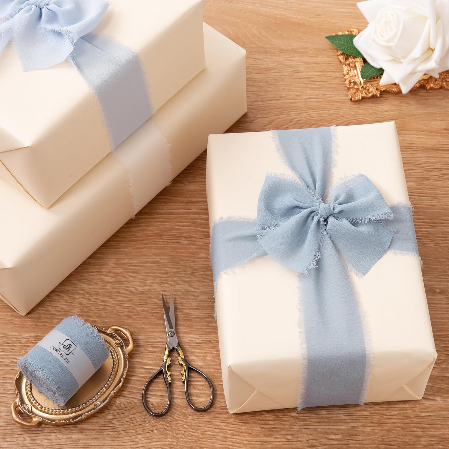 - 【Multiple Applications】This chiffon silk ribbon is great for gift wrapping, wedding decorations, wedding invitations, birthday parties, holiday celebrations, bridal showers, newborn photography props, wedding aisle backgrounds, boutonnieres, flower girl baskets, bouquet wrapping ribbons, Easter baskets, and even Christmas gift wrapping. Its elegant appearance makes it an ideal choice for bohemian or rustic DIY projects.