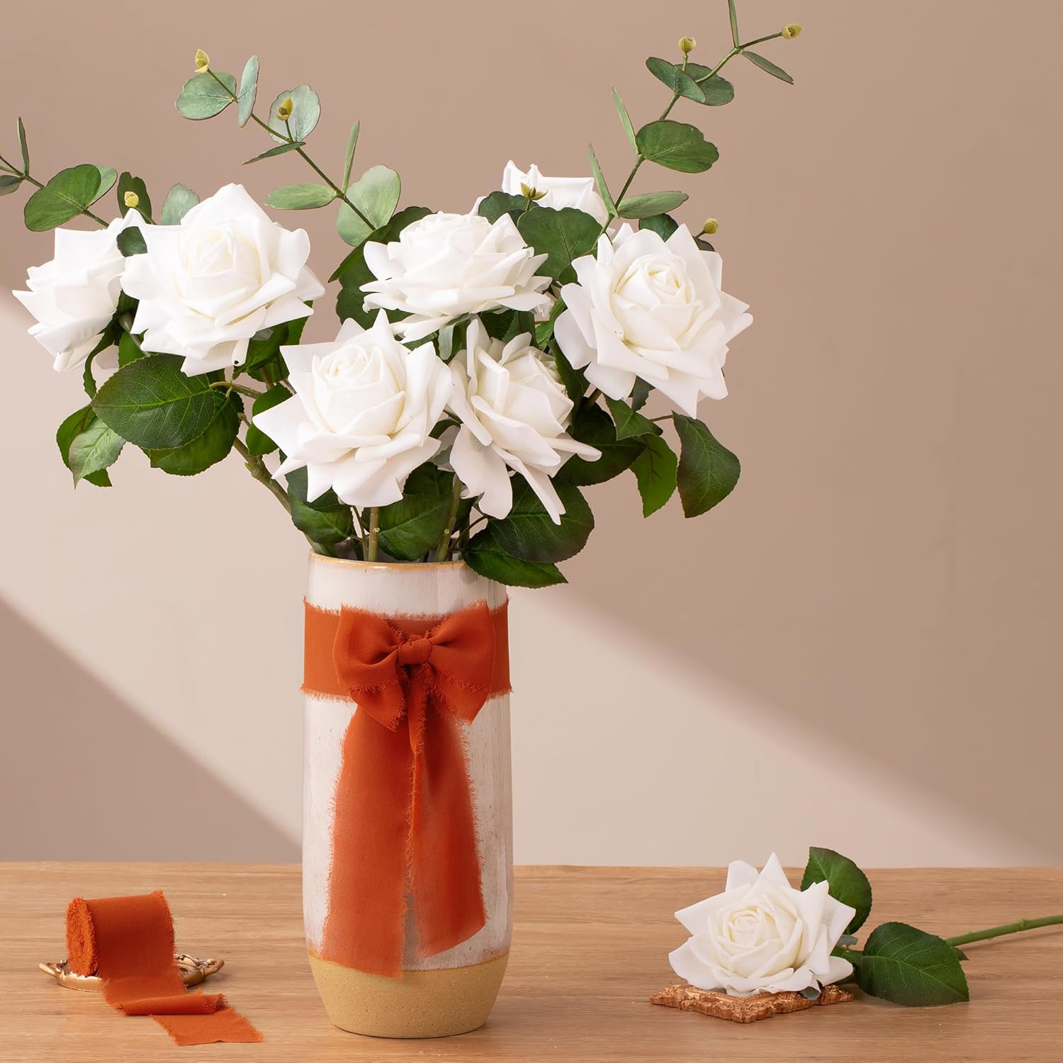 - 【Size and Color】Each roll of chiffon ribbon is 2 inches wide and 7 yards long, perfect for various creative uses such as making bows, decorating wreaths, and DIY crafts. This set includes 3 rolls burnt orange ribbons. These vibrant frayed ribbons add a rustic charm to your creations, ideal for bouquet wrap or gift ribbon.