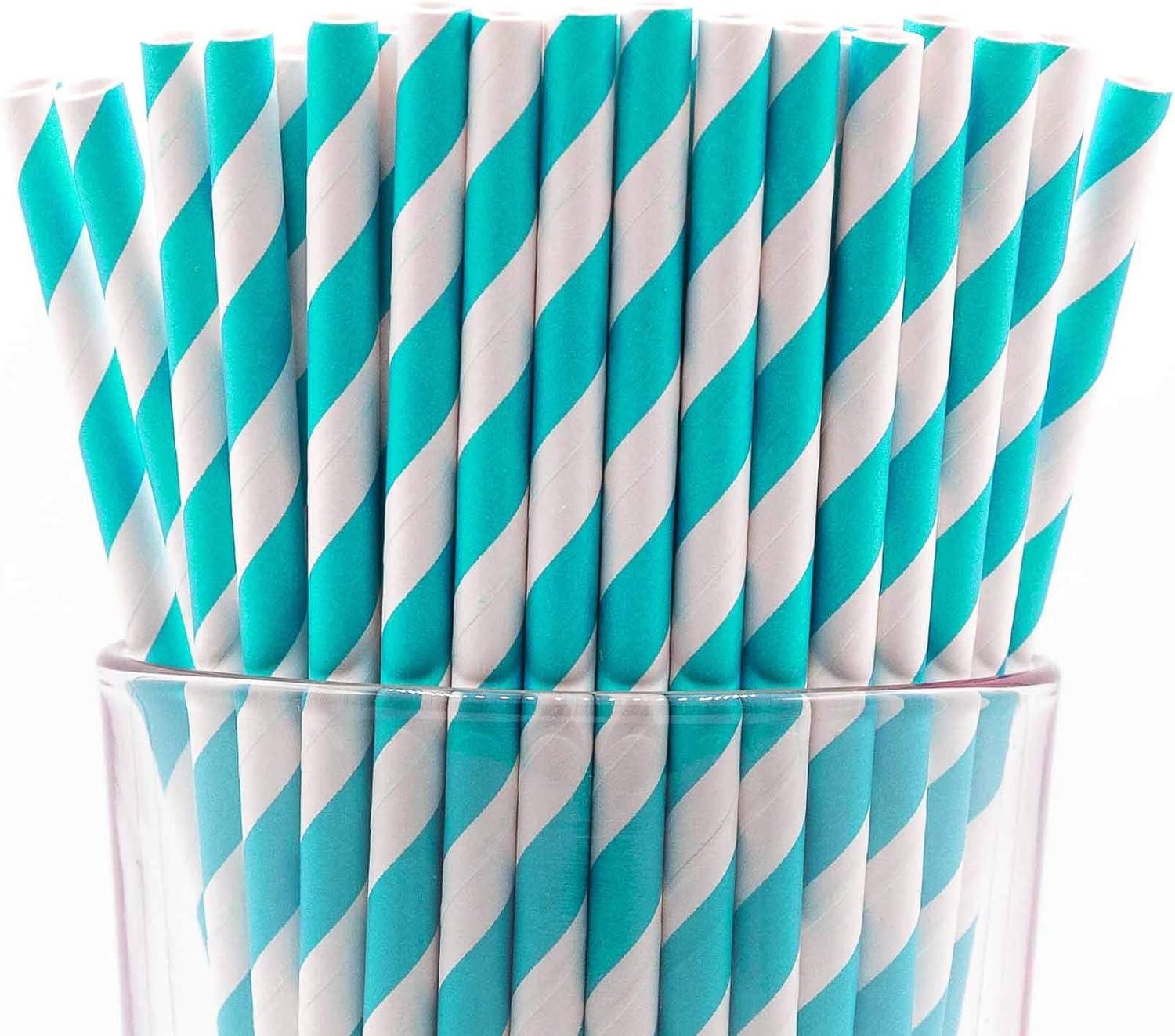 - Pack of 300 Turquoise Swirls paper straws that are 7.75” long and have a diameter of 0.25”. Made with 4-ply paper which translates into thicker and more resilient straws that won’t wilt or change shape in both hot and cold drinks.