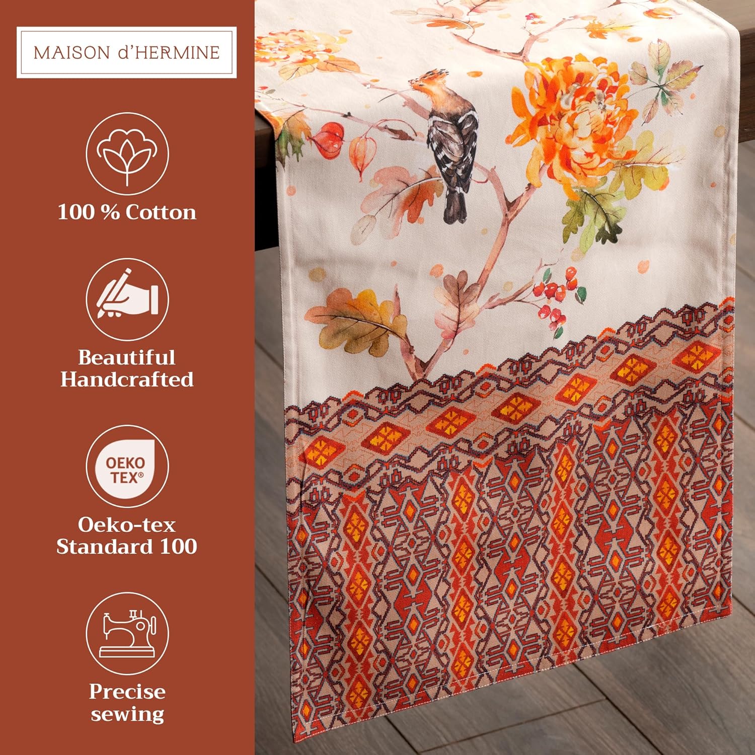Maison d' Hermine Table Runner 100% Cotton Double Layer Table Runners 108 inches Long for Thanksgiving Christmas Decorations Home Kitchen Dining Party Wedding (Kelim - Prairie, 14.5" x 108")