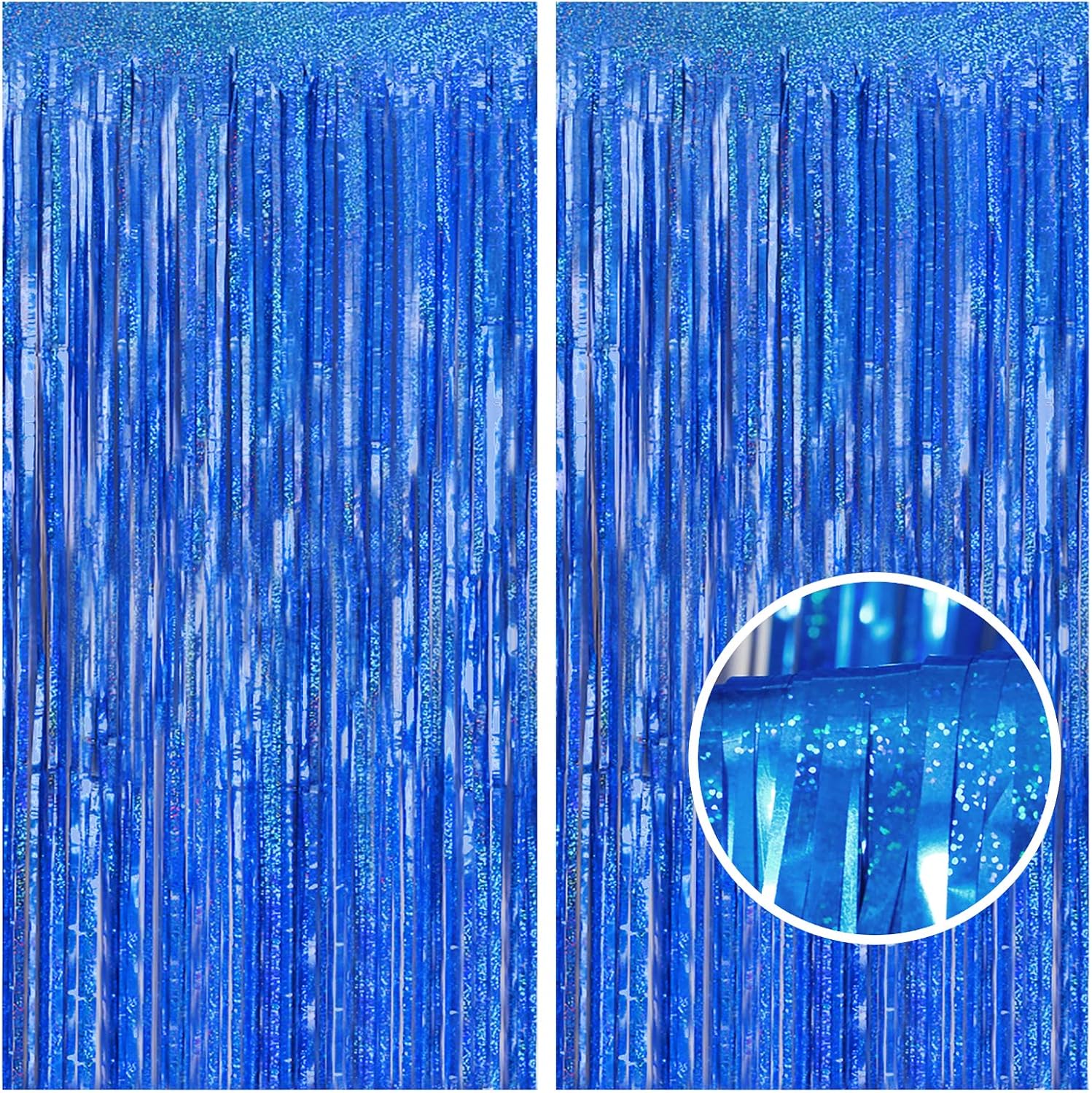 Melsan 2 Pack 3.2 ft x 8.2 ft Tinsel Foil Fringe Curtains Backdrop, Sparkle Metallic Tinsel Foil Curtains for 4th of July Independence Day Patriotic Decorations Party Photo Booth Props, Navy