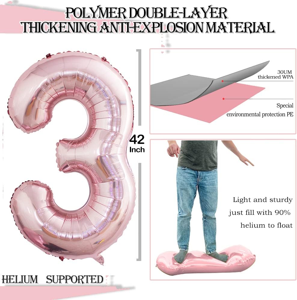 - 2 pcs Number 3 Balloons in Package,Double Guarantee for the 3rd Birthday Party or 33rd Birthday Party